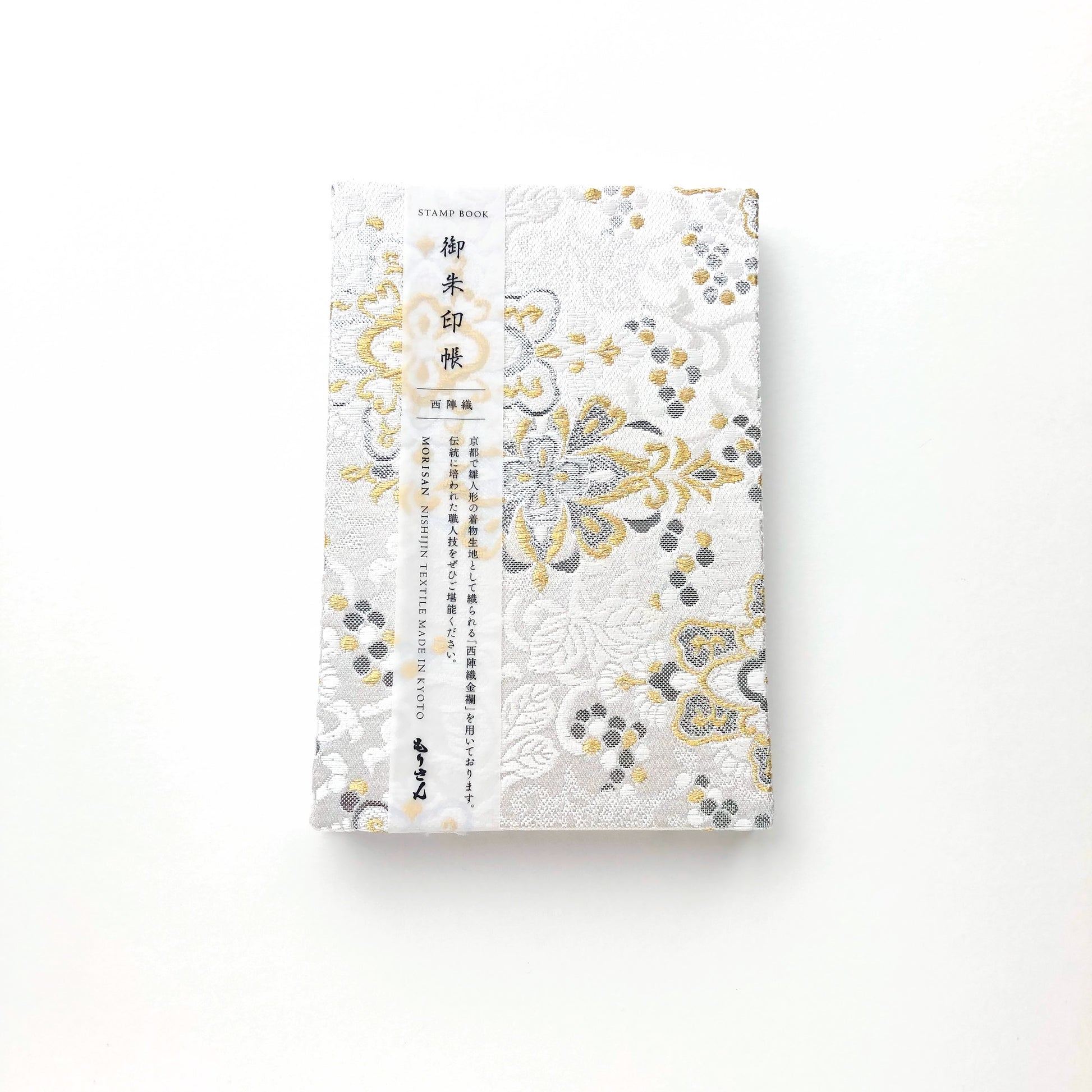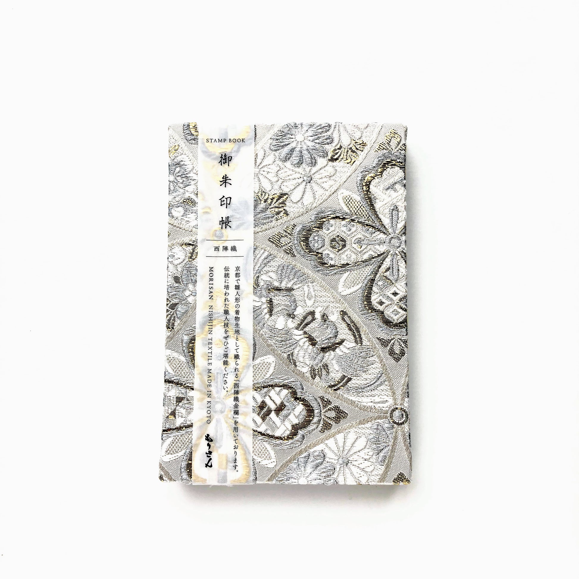 MORISAN PLUTINUM LINE red stamp book. We use fabric woven with gold and silver threads and foil based on white. Two sheets of votive paper are pasted together to create a double-fold binding specification, and it has a good reputation for being resistant to bleeding and preventing ink from showing through.