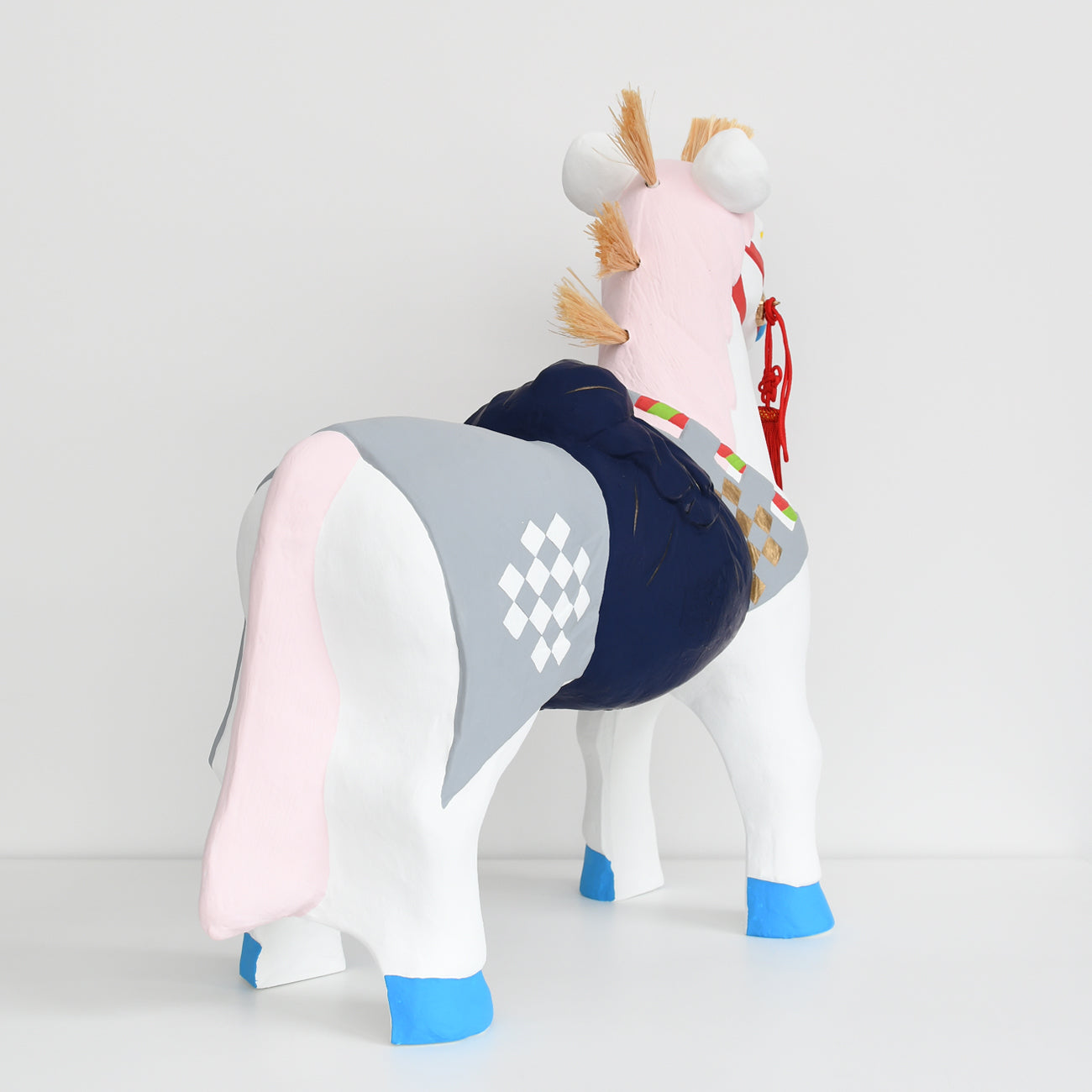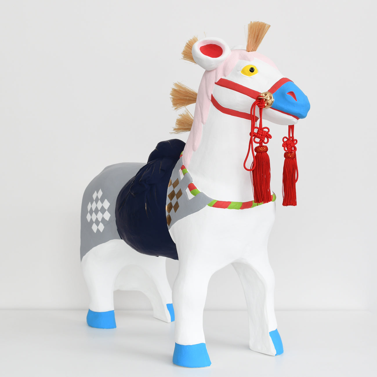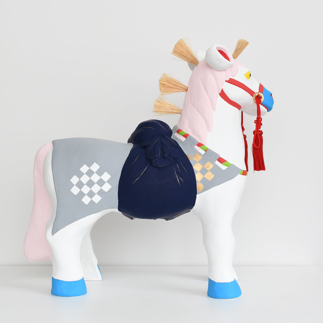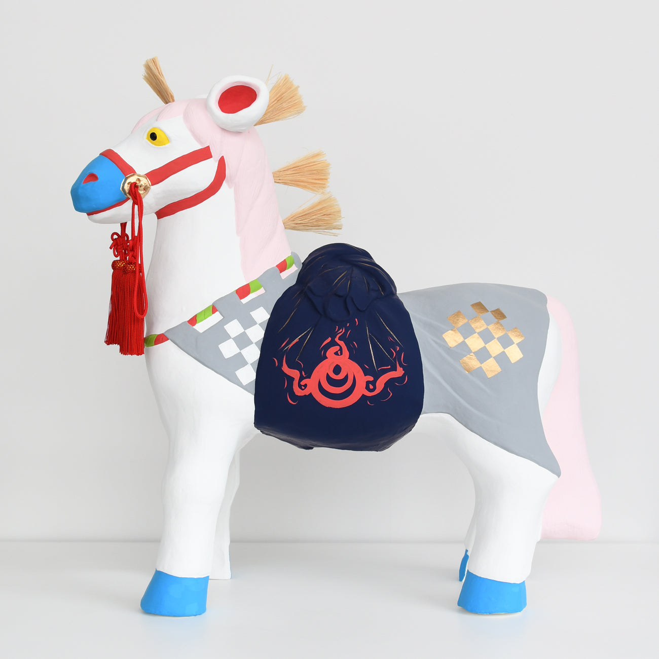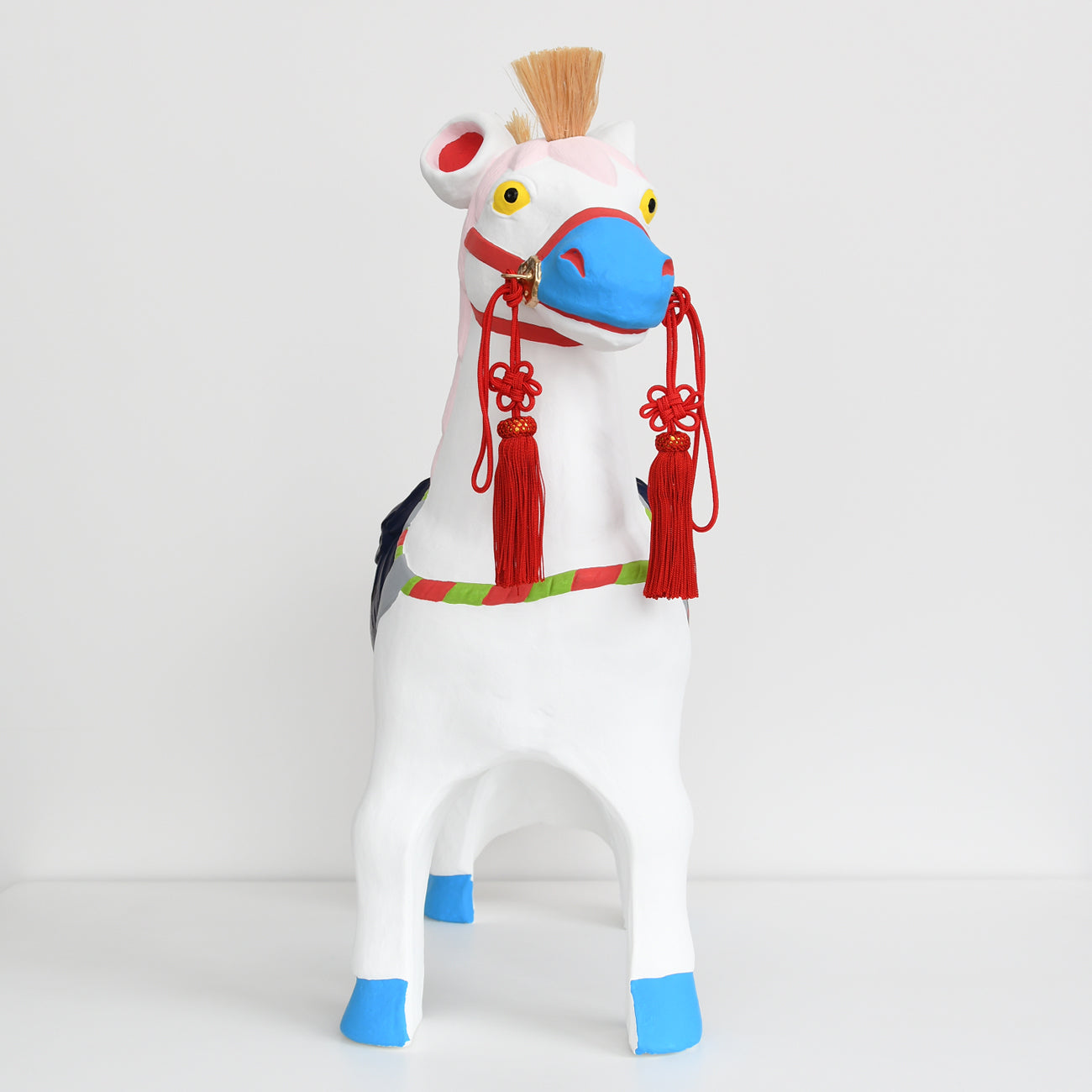 This is a large Fushimi doll, the "Sacred Horse," measuring approximately 60cm in length. The horse's harness, including the chest strap, belly band, and neckband, is also luxuriously decorated.