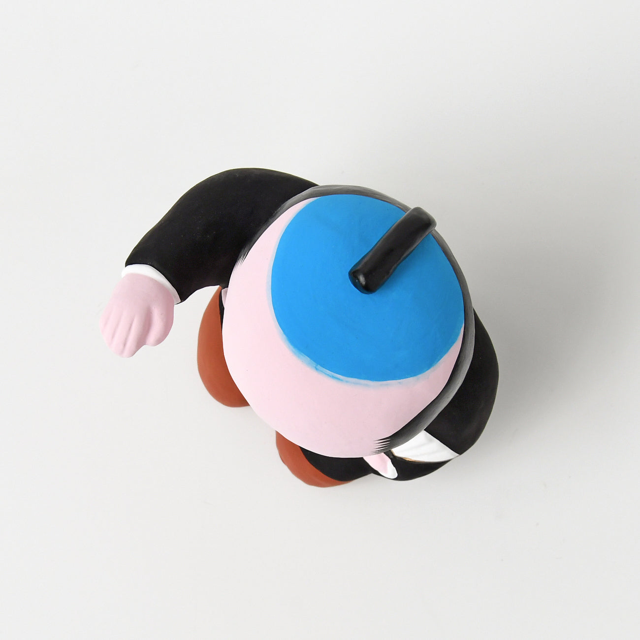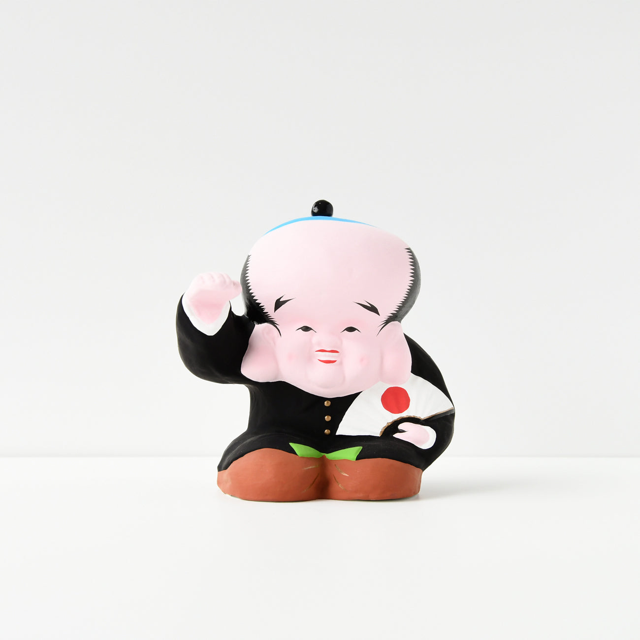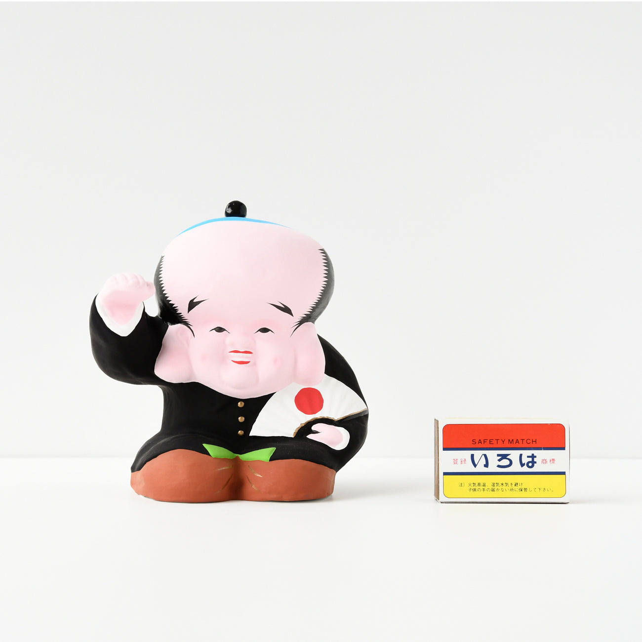 This is Fukusuke-san, wearing a kamishimo and holding a folding fan.
