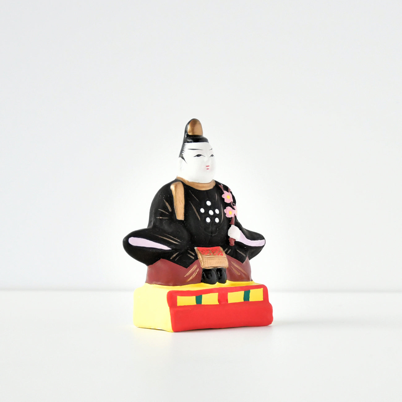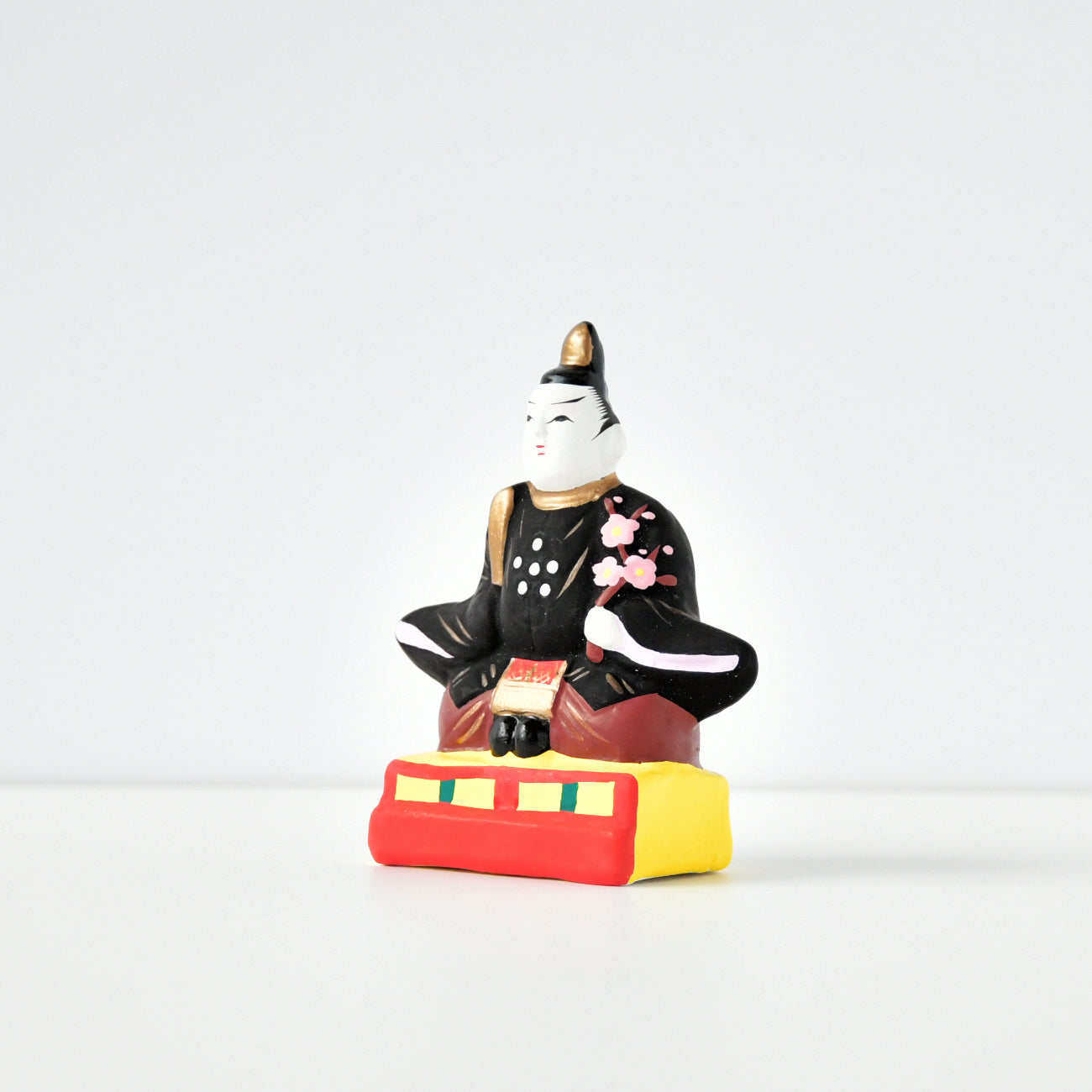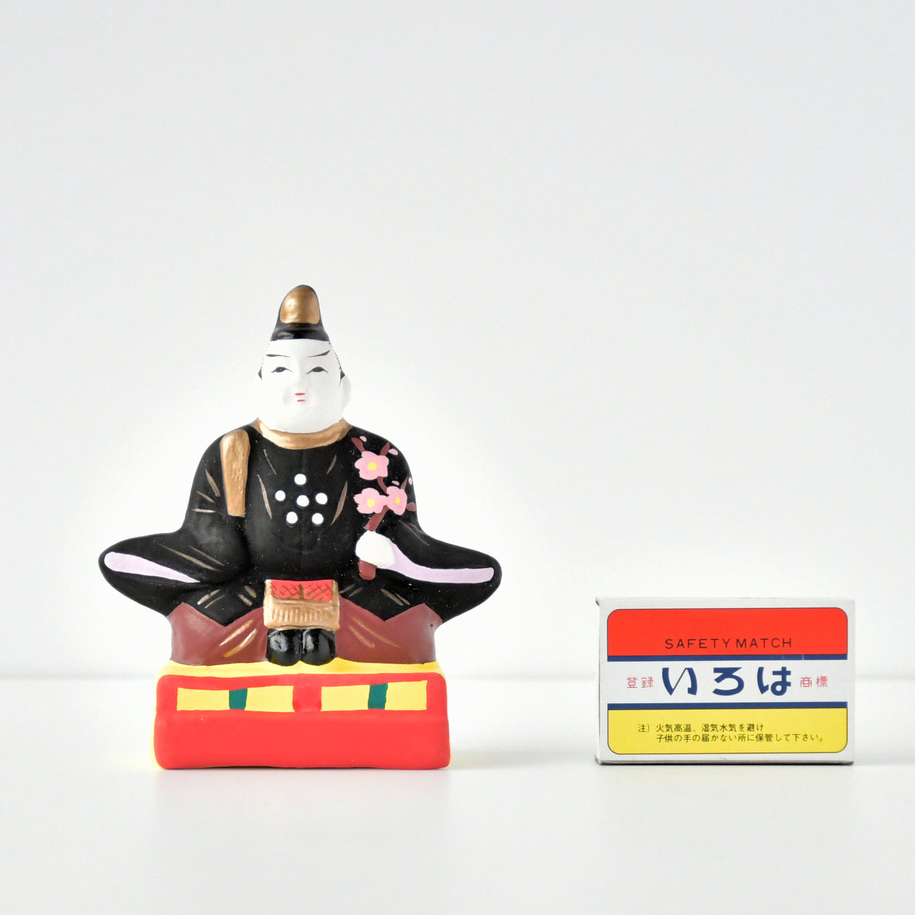 It is a dignified Tenjin who holds a plum tree and wears a ceremonial dress with a crest of a plum bowl.