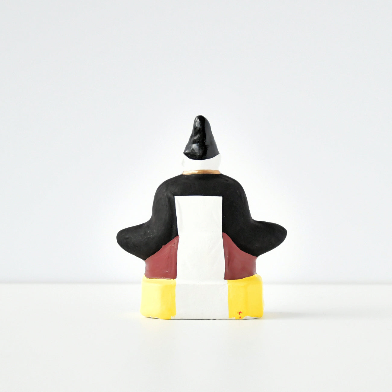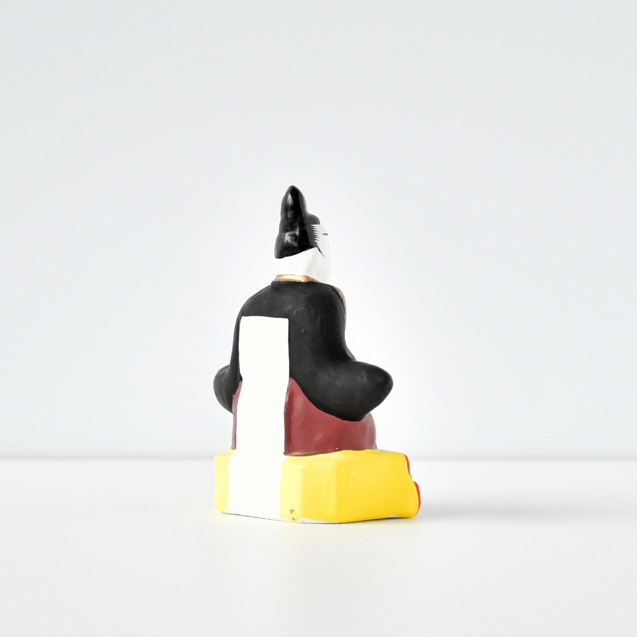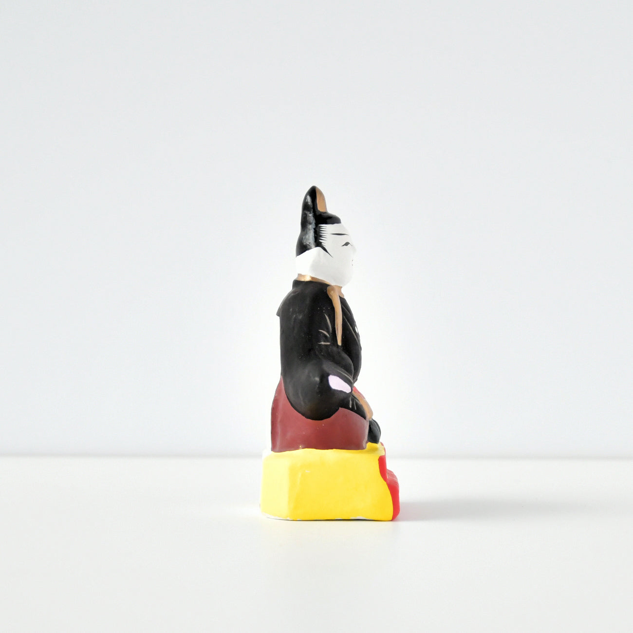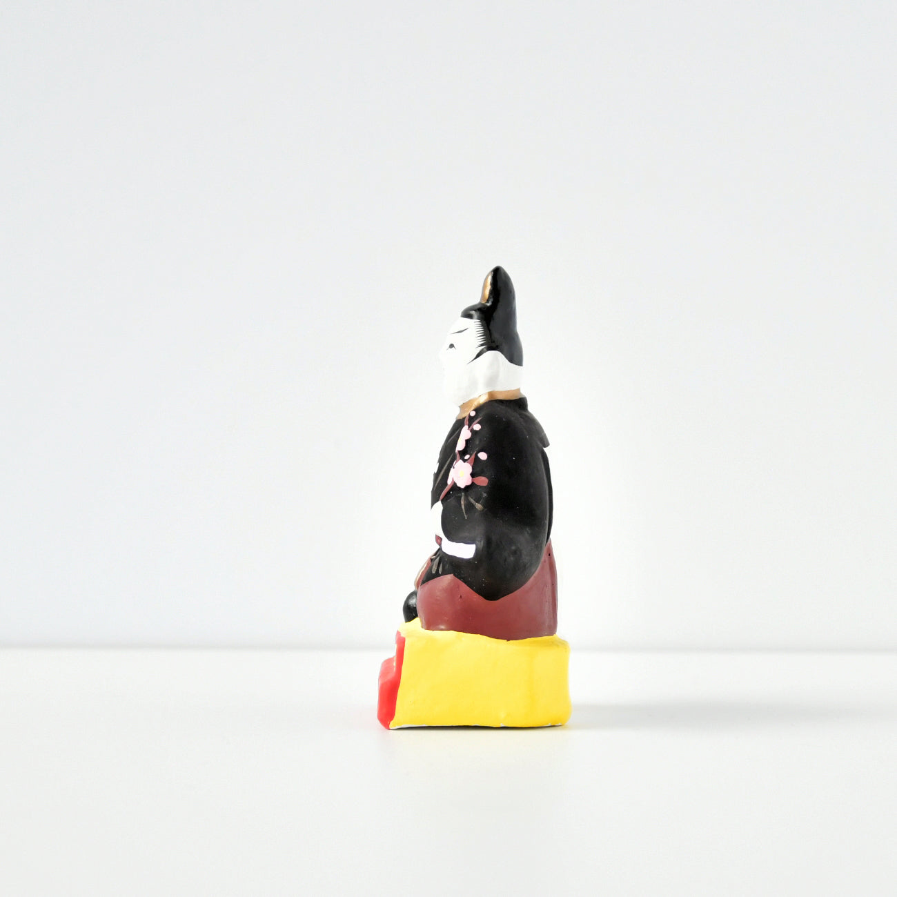 It is a dignified Tenjin who holds a plum tree and wears a ceremonial dress with a crest of a plum bowl.