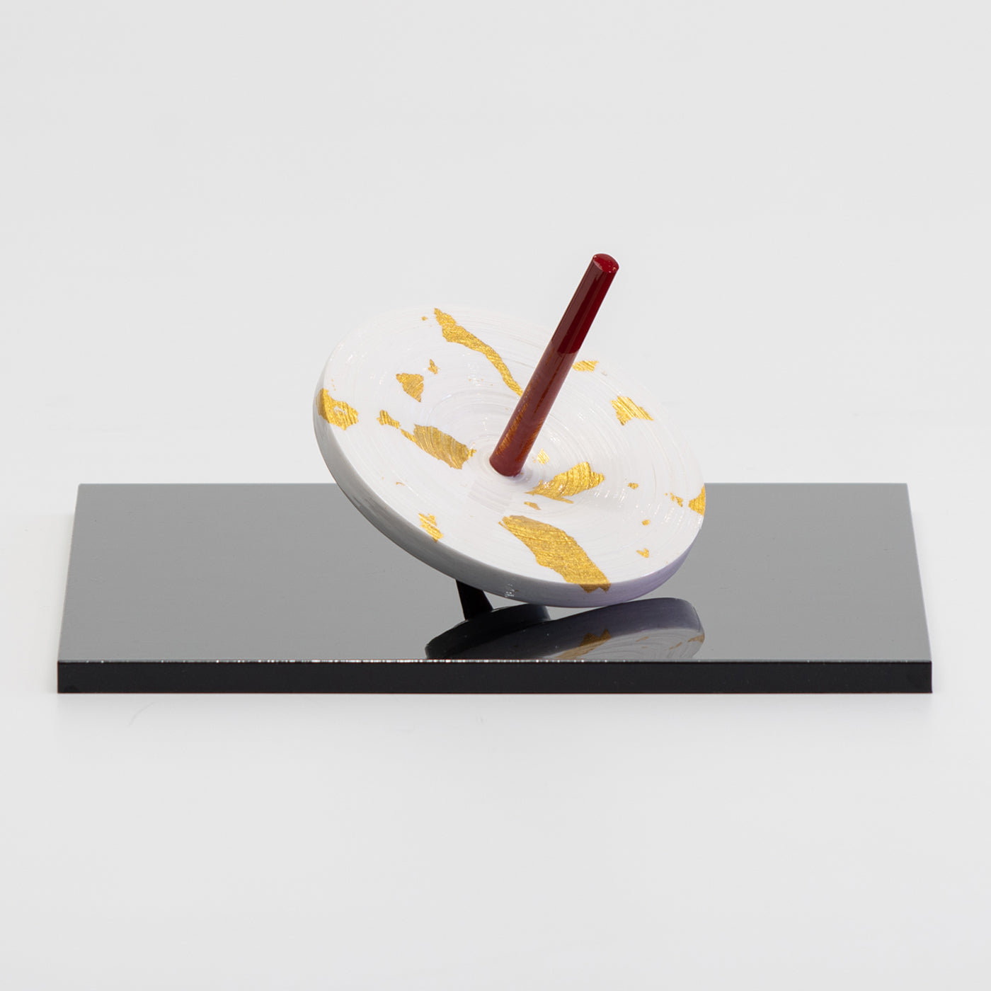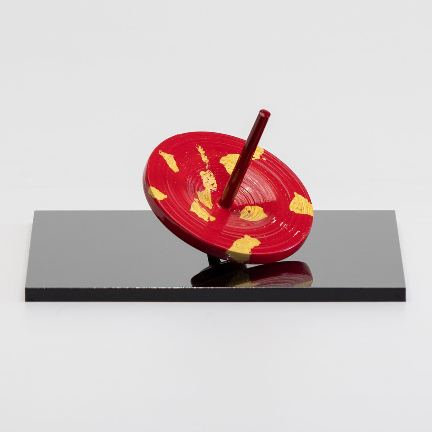 This is the only workshop that continues the tradition of "Kyo Koma", a traditional Kyoto craft. "Kyo Koma" originated as "ozashiki" tops made by upper-class women in the "Momoyama" period, by wrapping scraps of "kimono" fabric around a bamboo core. Today, they are made by wrapping flat cotton cord around a bamboo core. Highly artistic tops, such as precise reproductions of the floats used in the "Gion" Festival, are also popular as ornamental pieces.