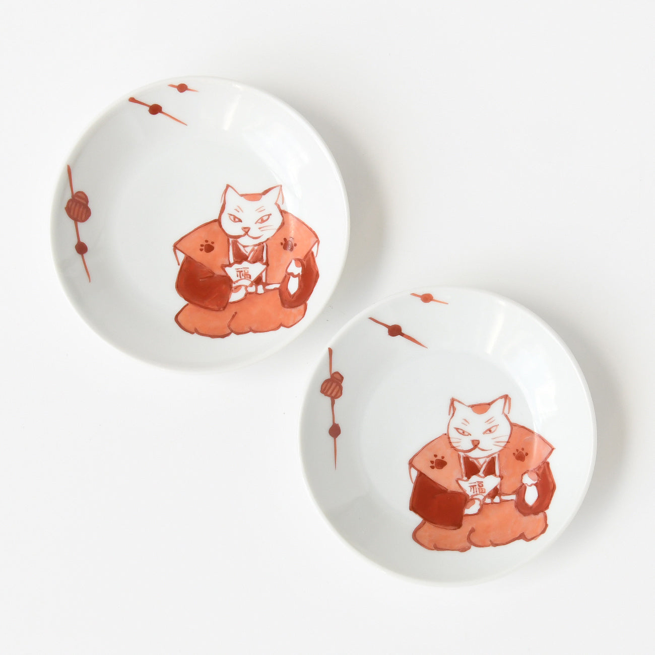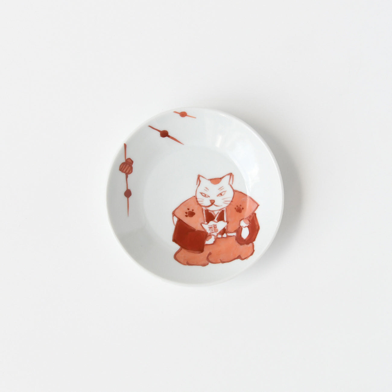 裃(かみしも)を着て、お酒を呑む招き猫。