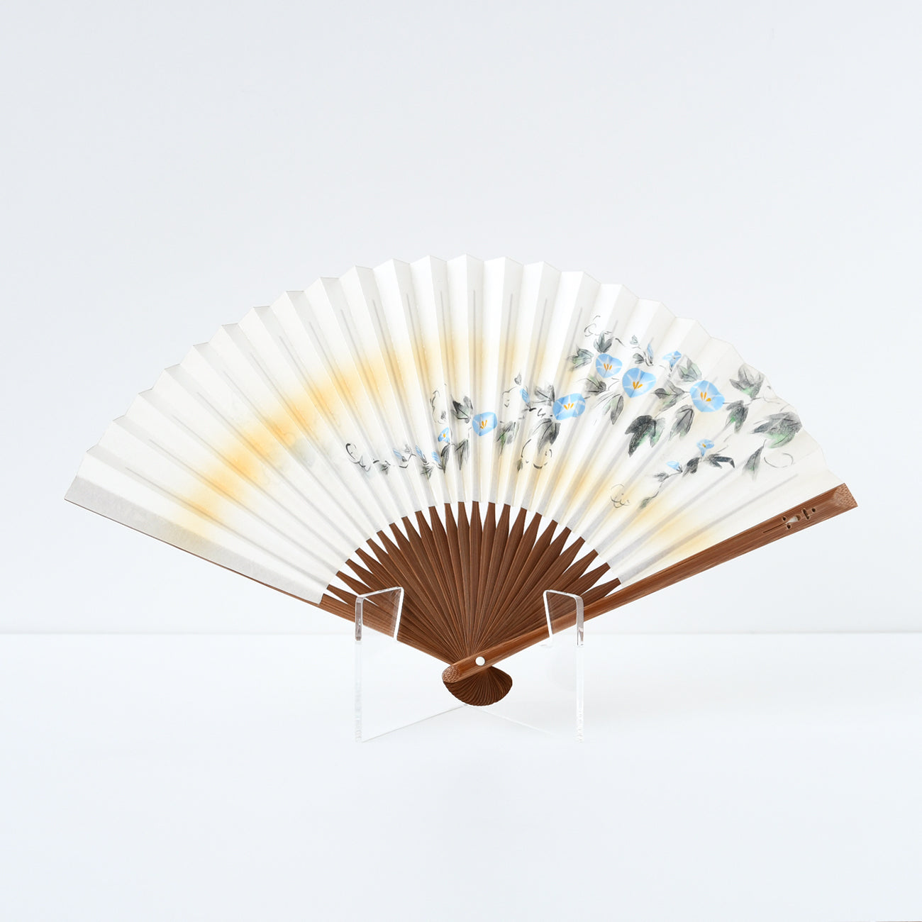 The fan surface is hand-painted with morning glories, a flower beloved in Japan since ancient times.