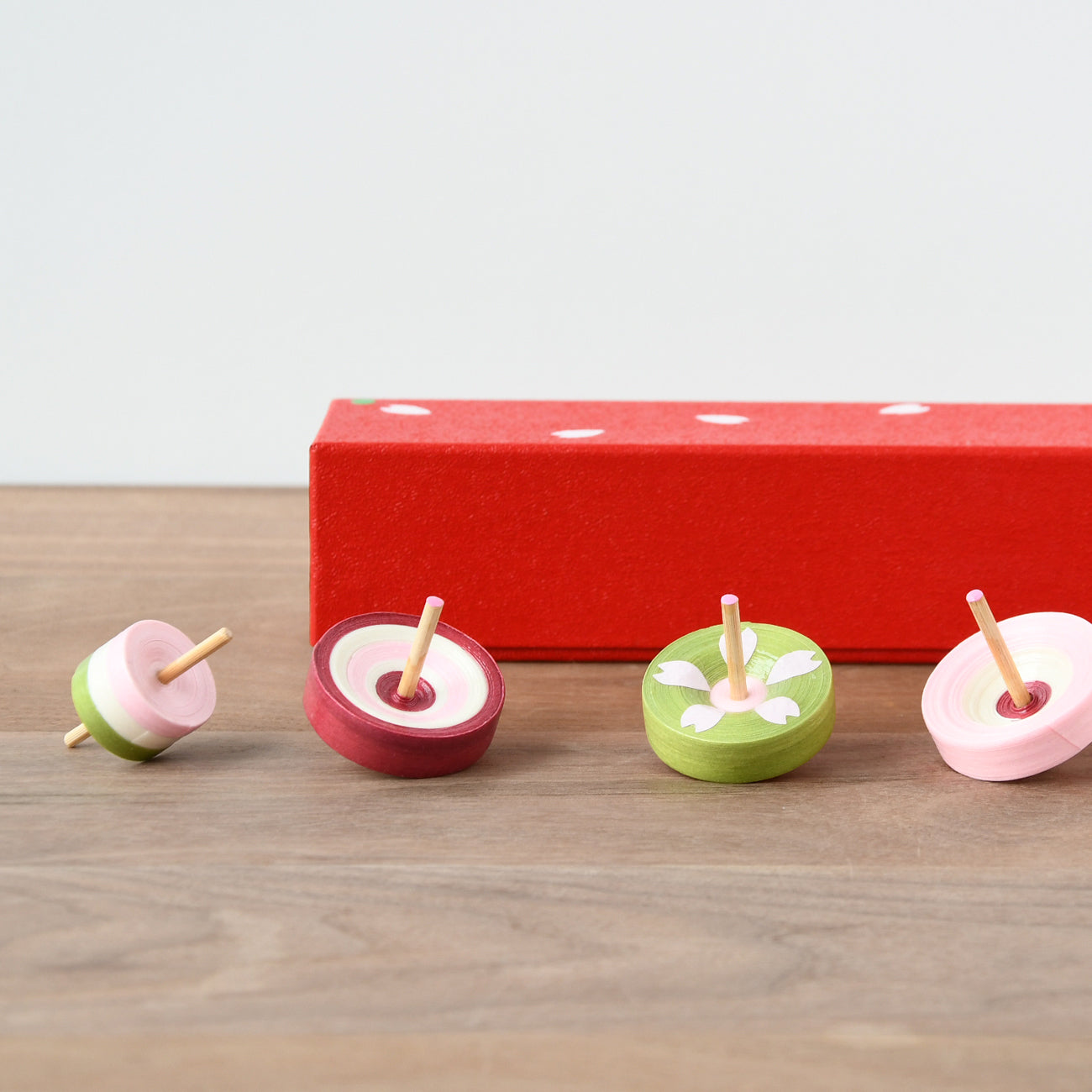 Sakura Maikoma is made by hand by wrapping dyed cotton strings in multiple layers, and when you spin the top, the cherry blossom petals made of Japanese paper dance beautifully around and around.
