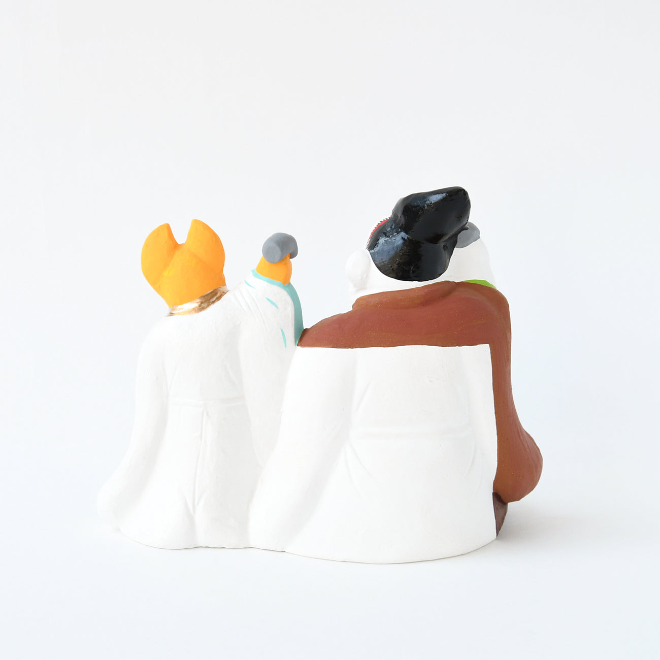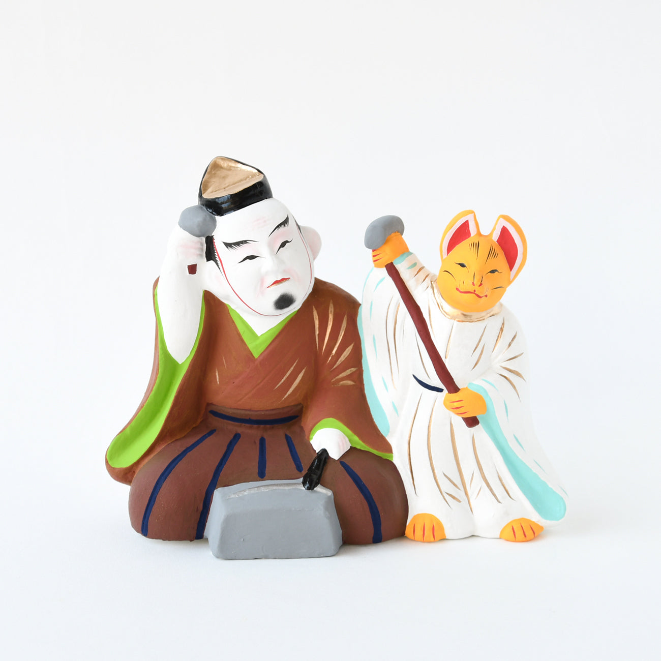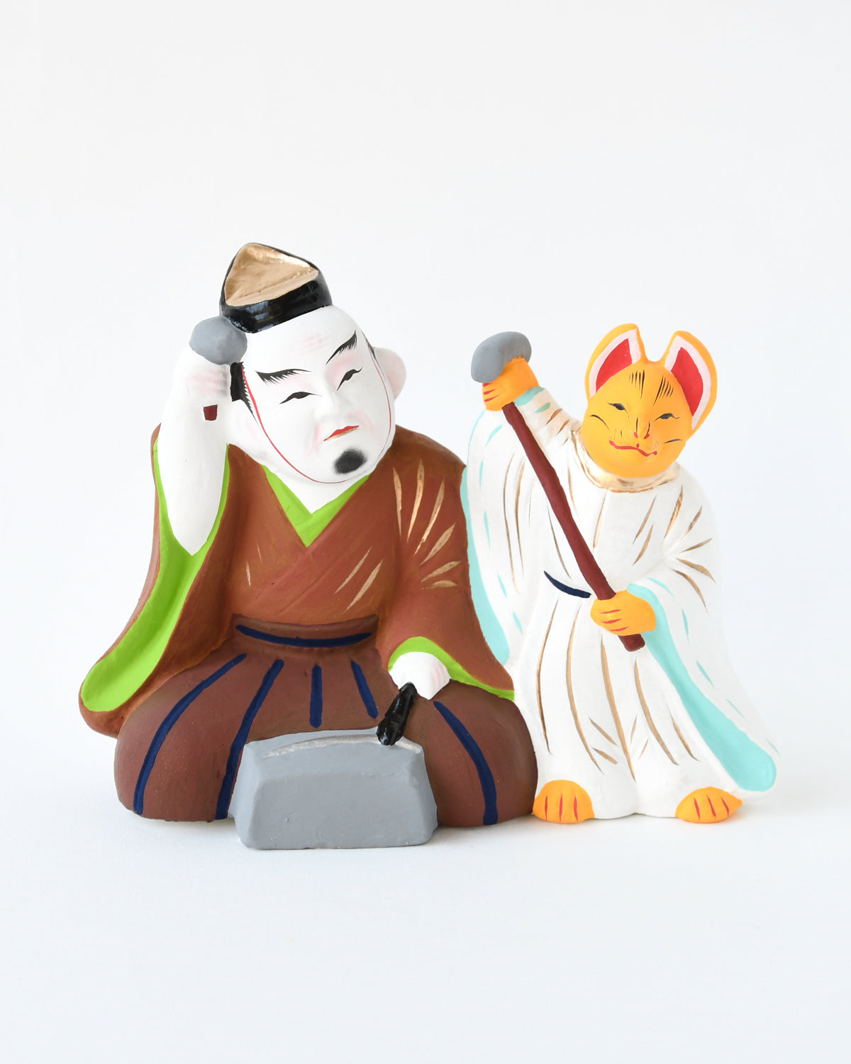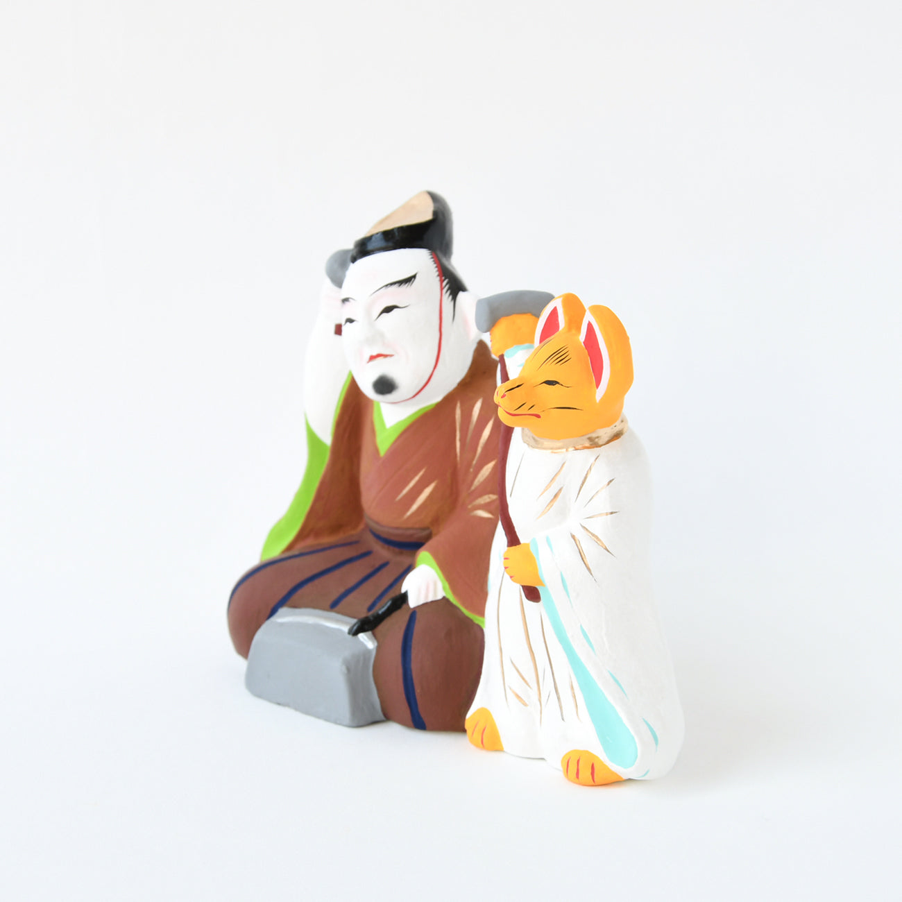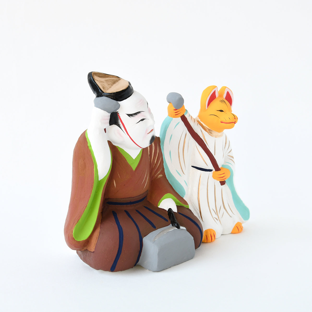 This Fushimi doll depicts the Heian period Kyoto blacksmith and master craftsman Munechika and his god's messenger fox. The way he nods in agreement.