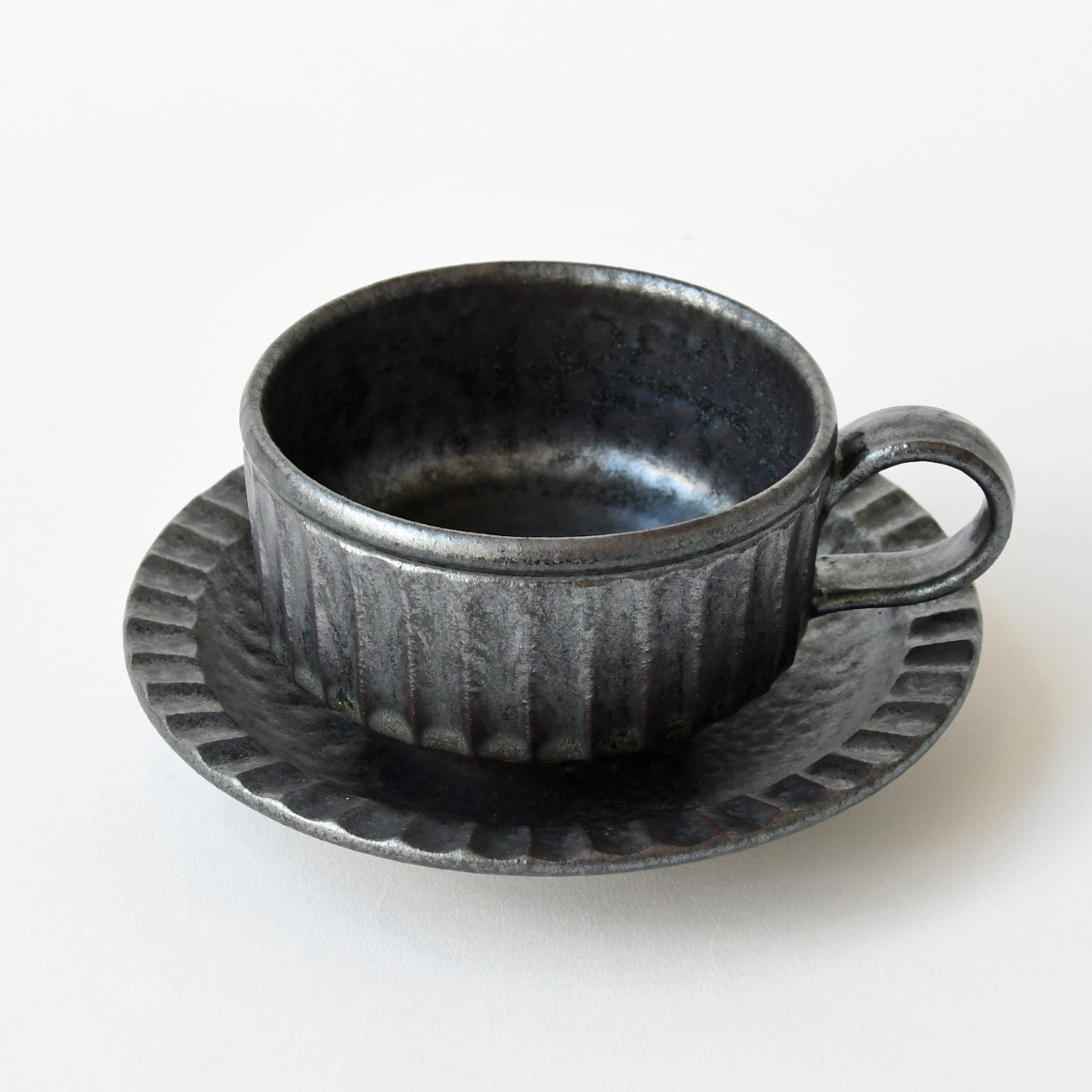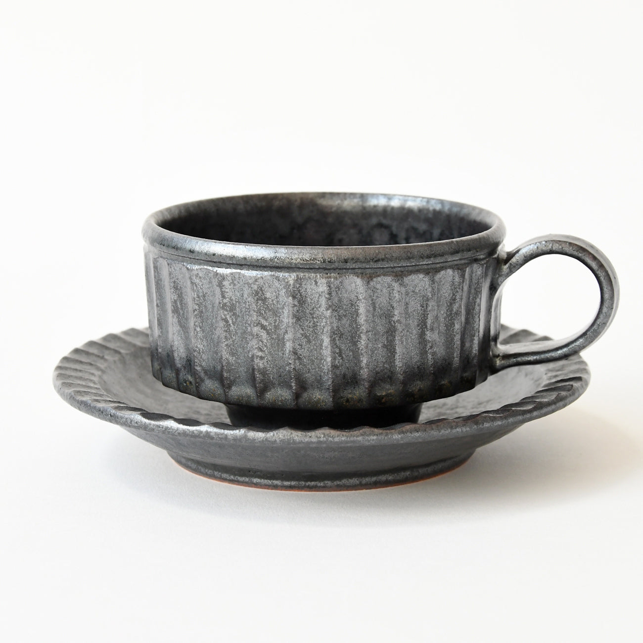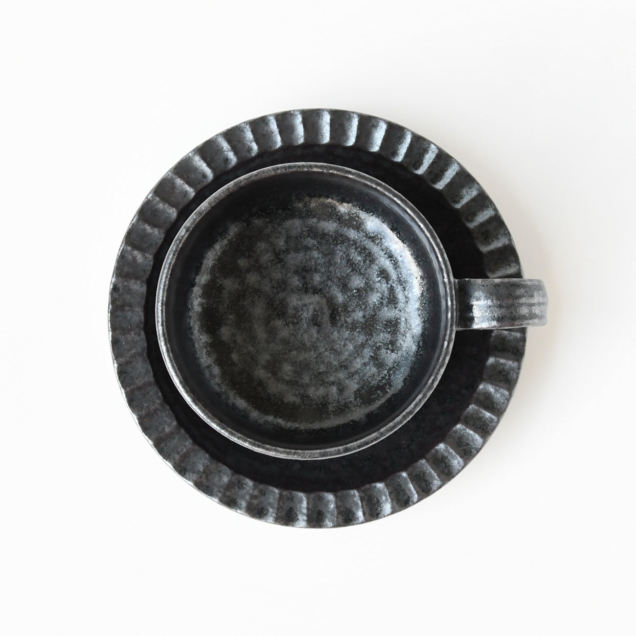 「落ち着きのある黒色を目指しました」と製作者の想いの詰まったカップ&ソーサー。