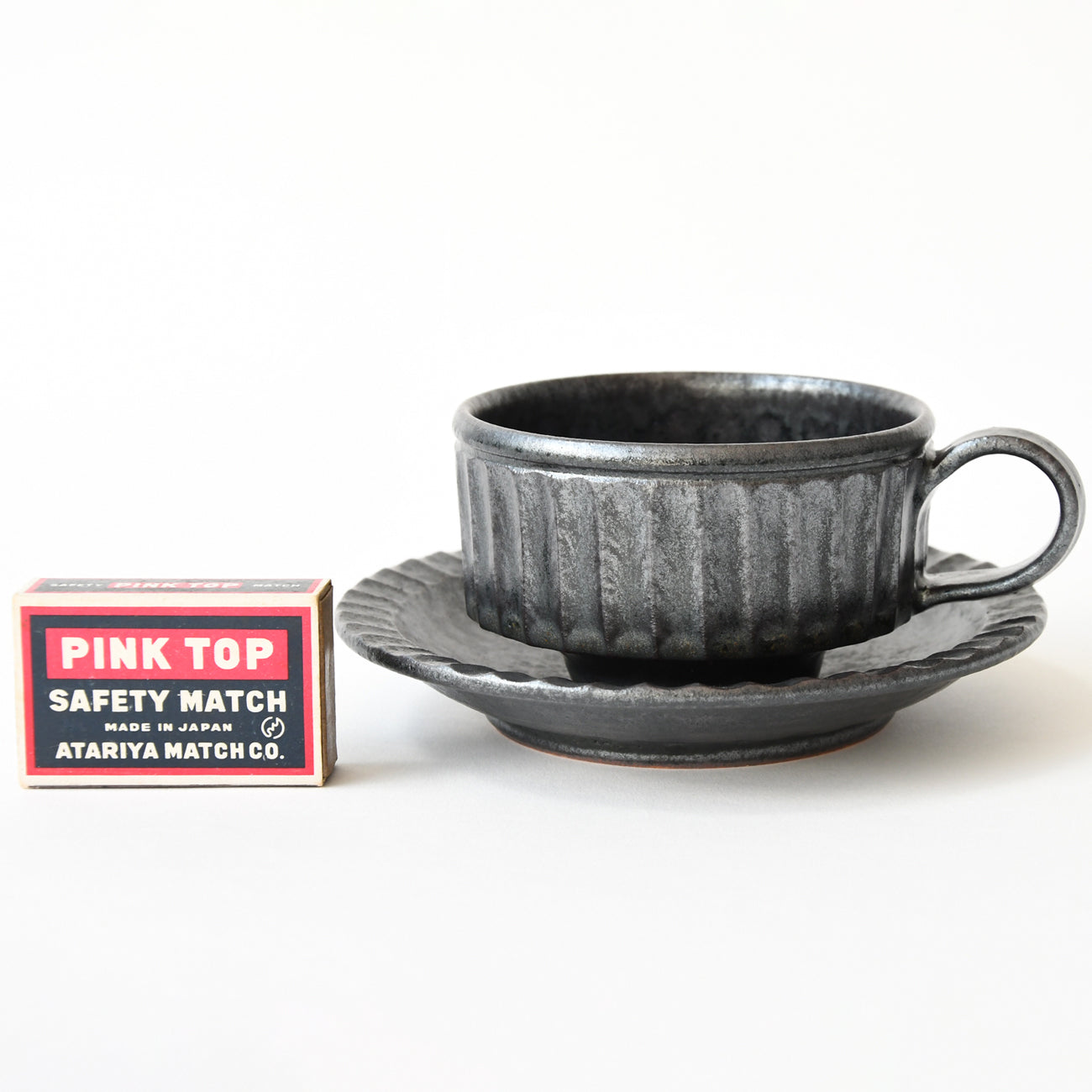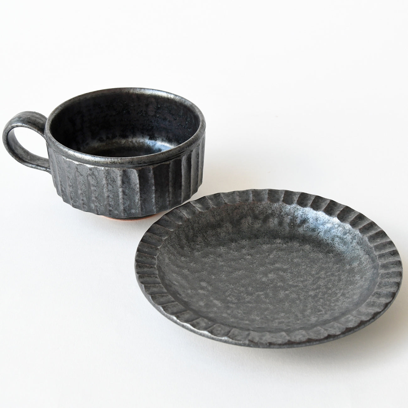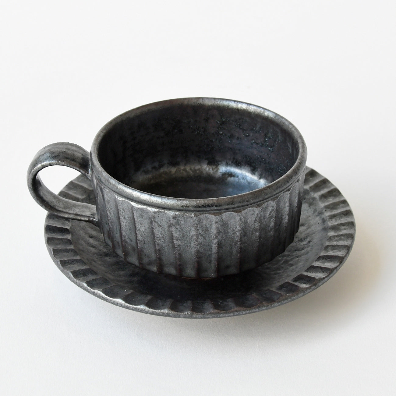 「落ち着きのある黒色を目指しました」と製作者の想いの詰まったカップ&ソーサー。