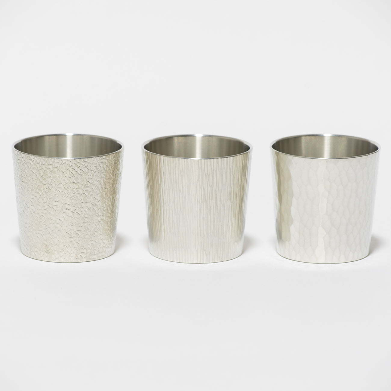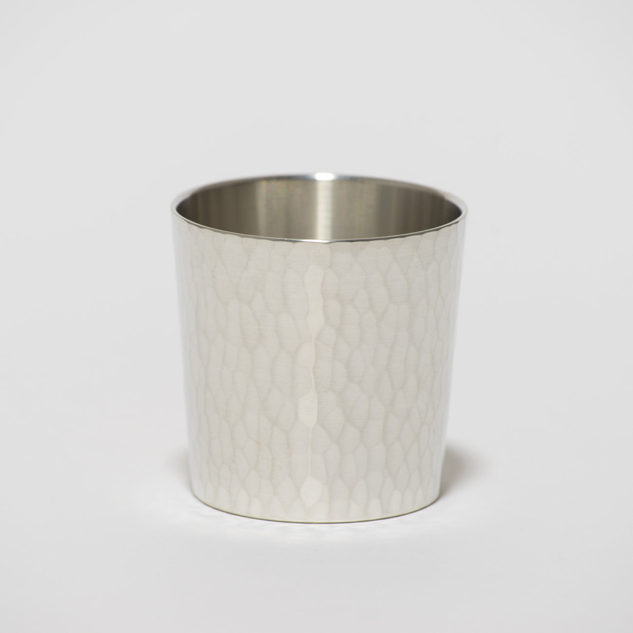 A sake cup made by beating a tin plate. Perfect for cold drinks.