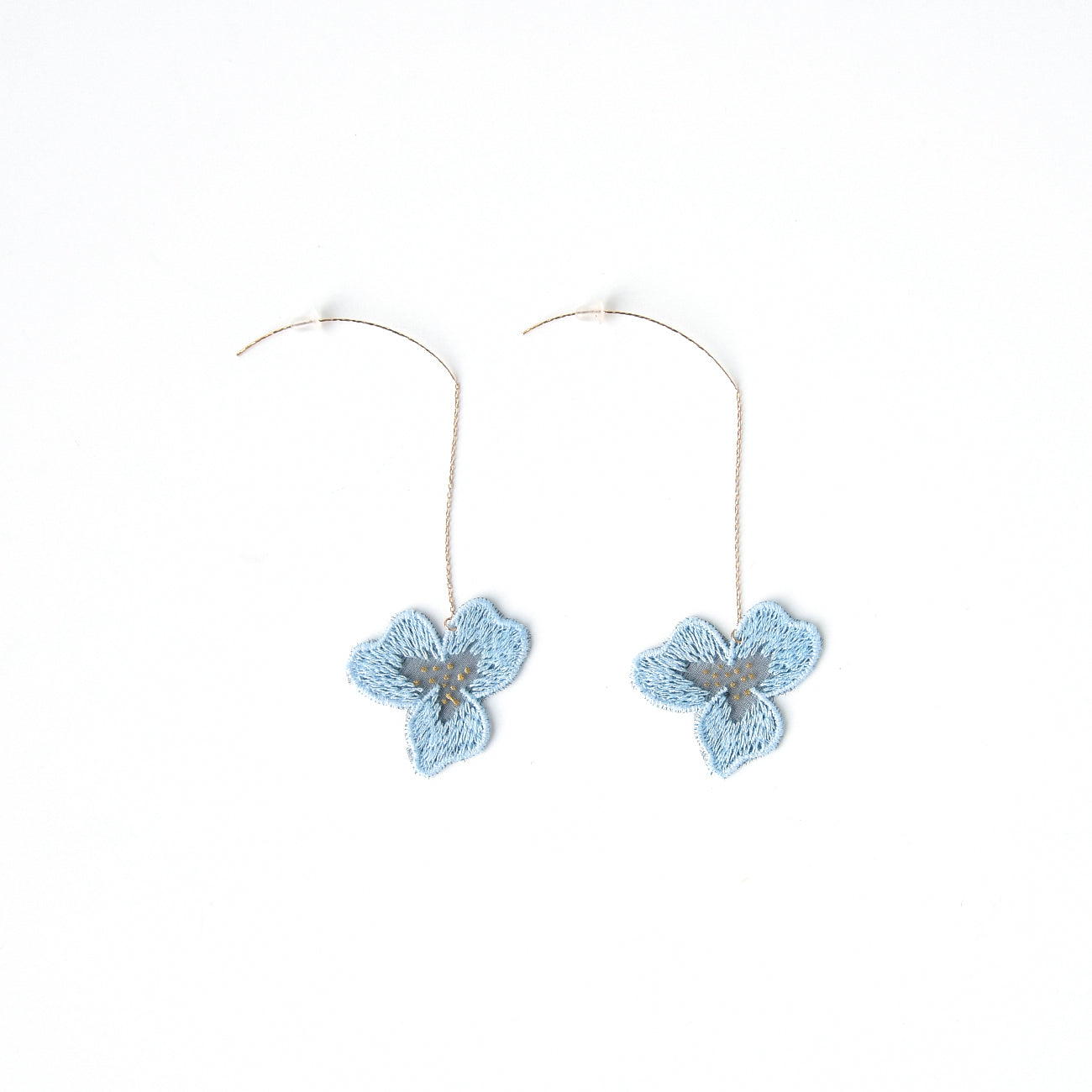 オリジナルの刺繍レースを、手描友禅で磨いた色彩感覚でひとつずつ染めて制作しています。空の色や花の色、風、温度、スイーツ、、様々なモノからインスピレーションを受け、色にアウトプットして染める色は繊細で色相の幅もとても豊か。あなただけのお気に入りの色をみつけてください。着用感がとても軽いところも特徴です。