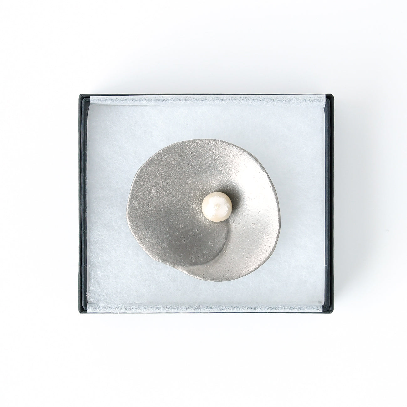 This is a large brooch made by hardening and shaping leather with lacquer.