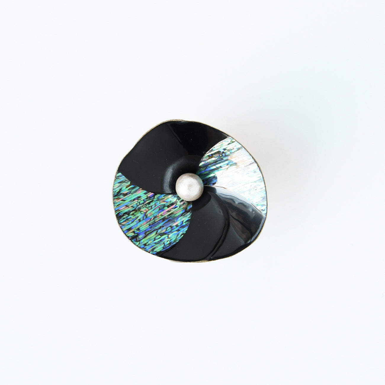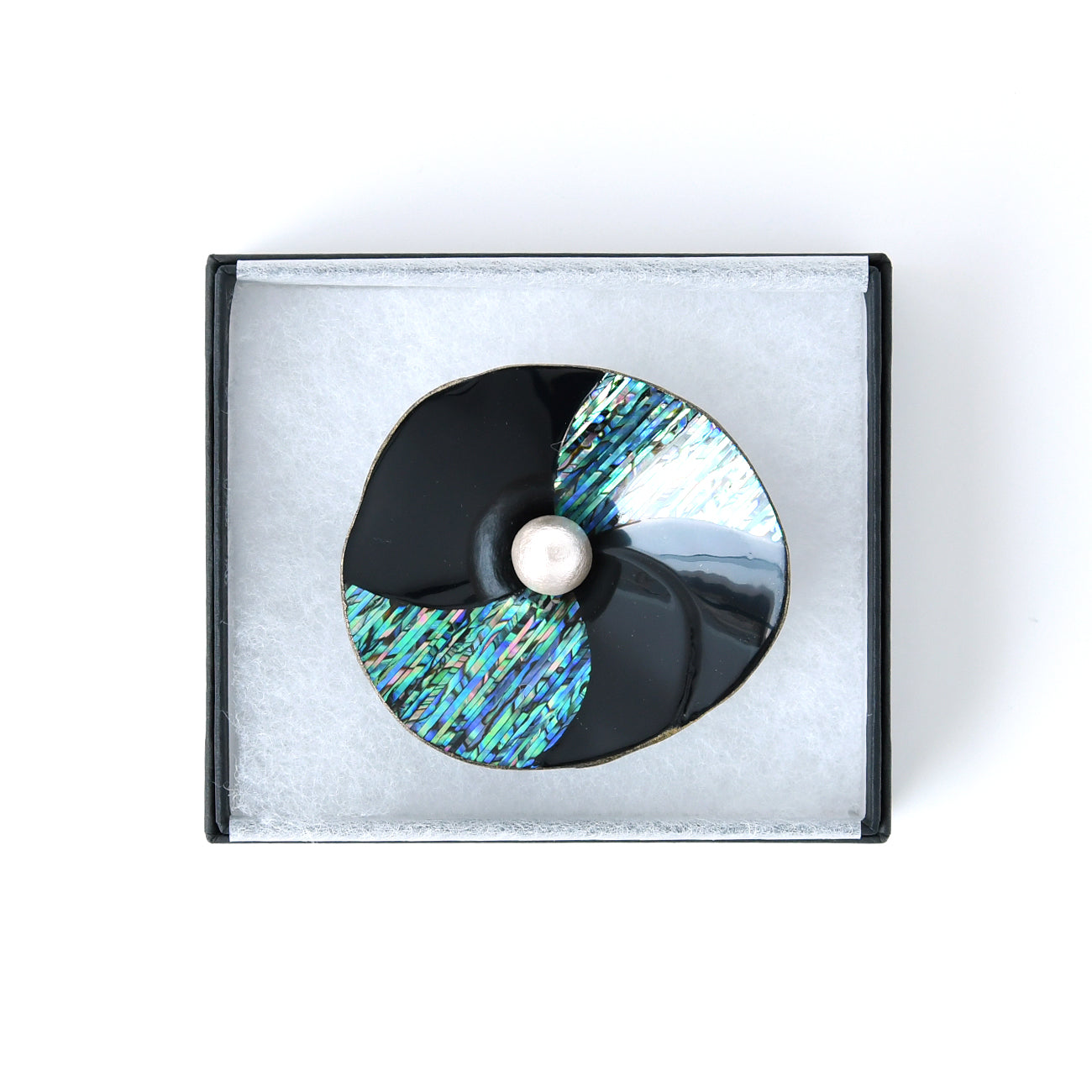 Lacquered leather brooch with mother-of-pearl / no.2382-b