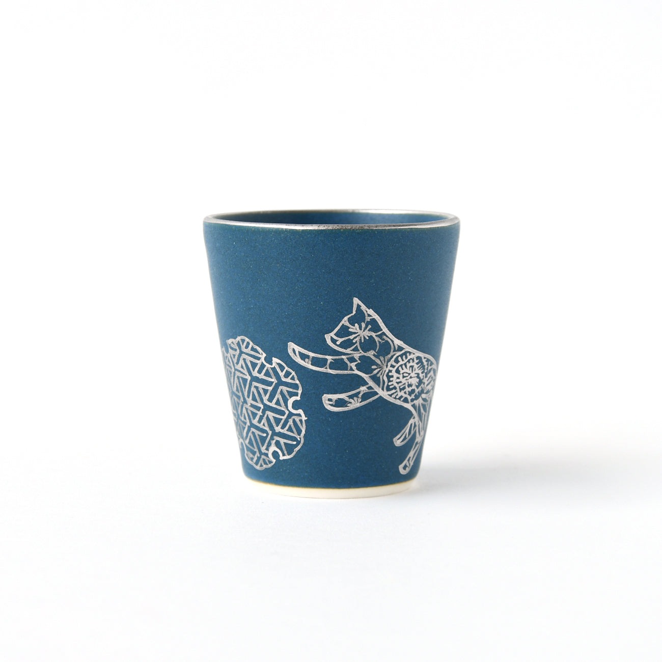 The matte texture and blue and platinum coloring give this sake cup a clean and cool impression.
