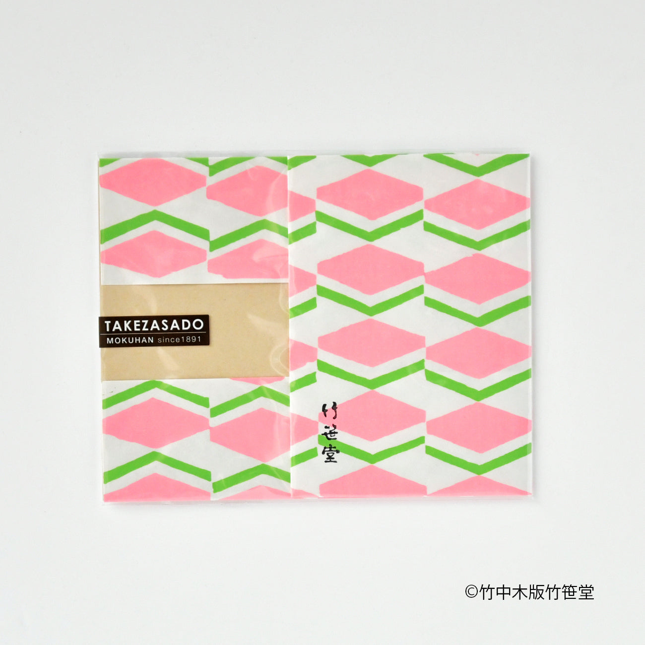 Woodblock print "Hishimochi" / Hiroko HaradaHishimochi is indispensable for the Peach Festival. It is a sweet that expresses the bright peach blossoms and the sprouts under the snow in the season when the snow is still early in spring.