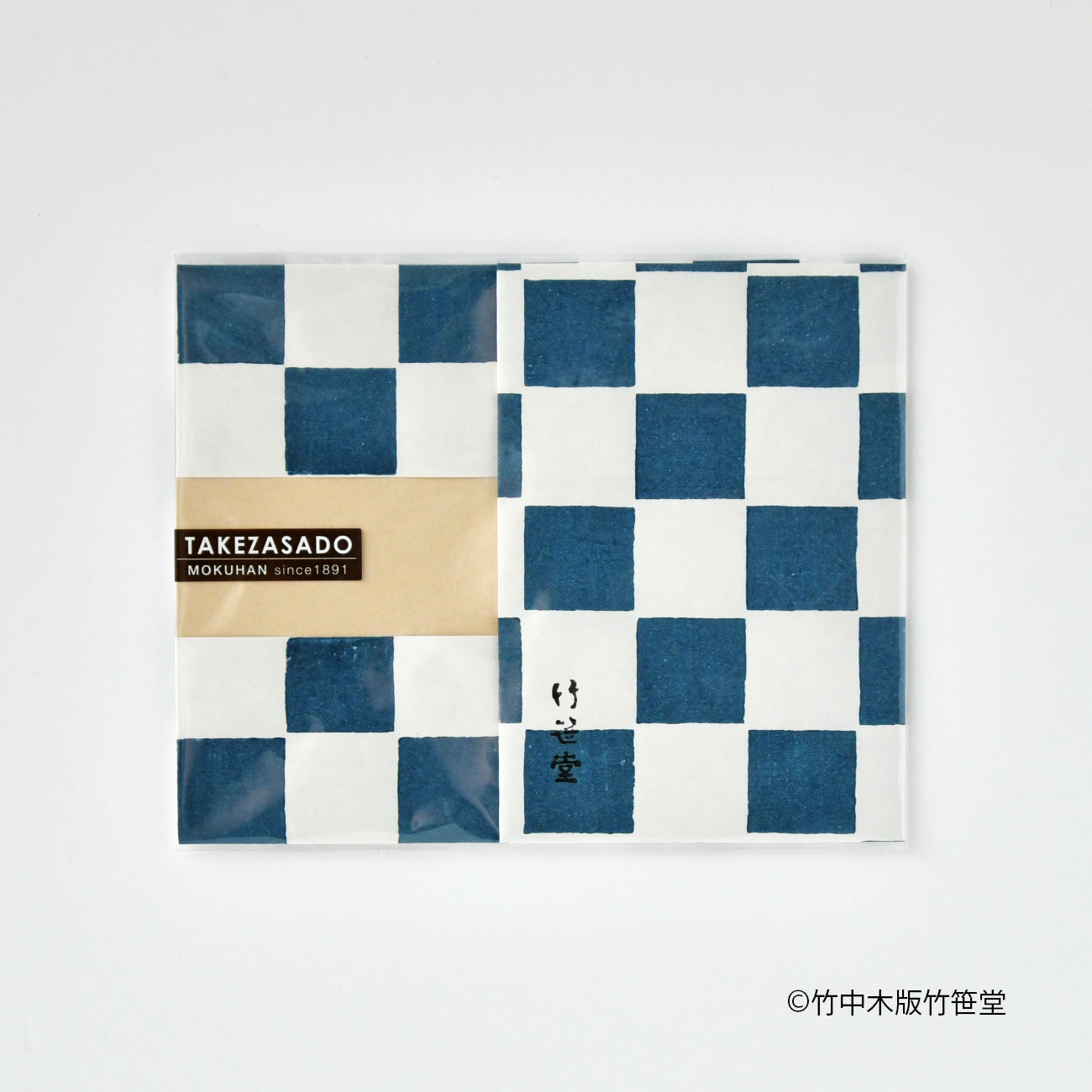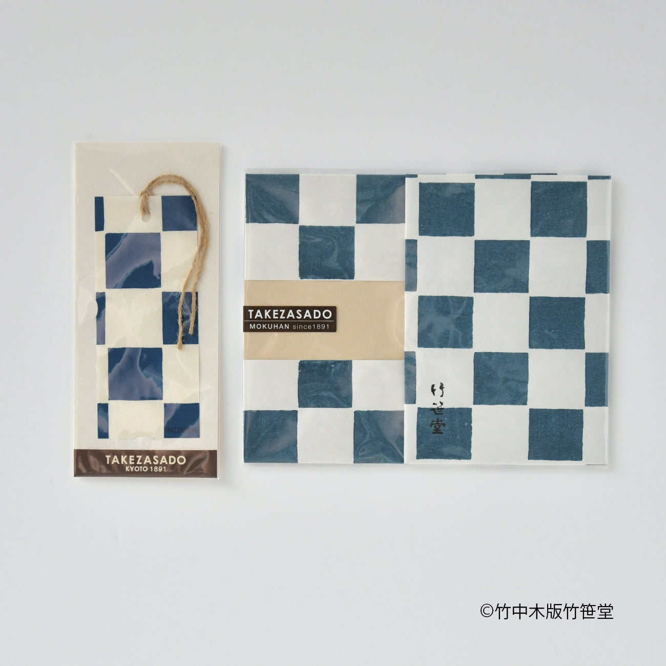 Woodblock print "Ichimatsu" / Kenji Takenaka A checkered pattern that creates a lattice pattern with white and colored backgrounds. As the moss in the garden of Tofuku-ji Temple, this design, which has been incorporated into various objects since ancient times, was designed in Japanese colors.