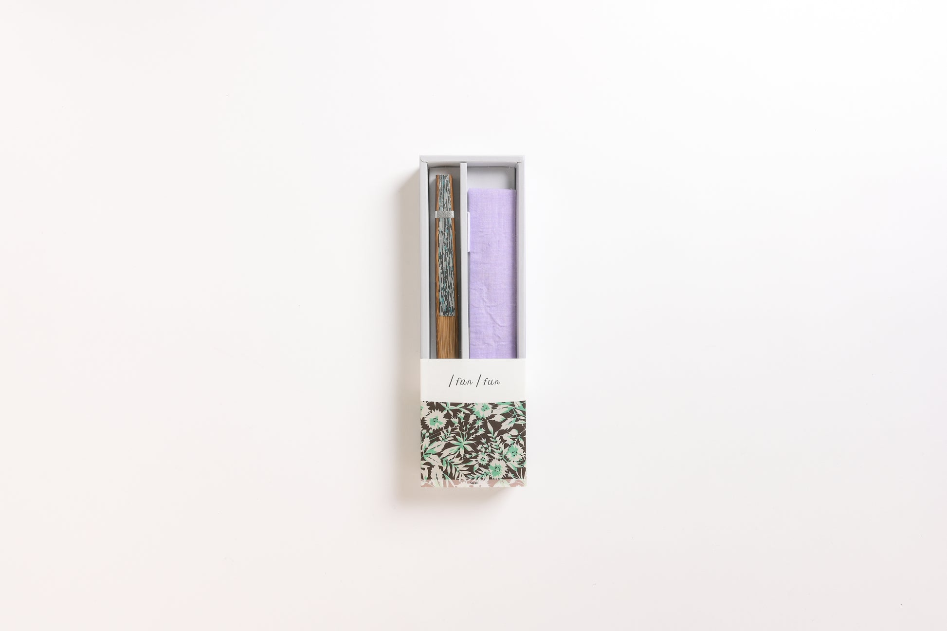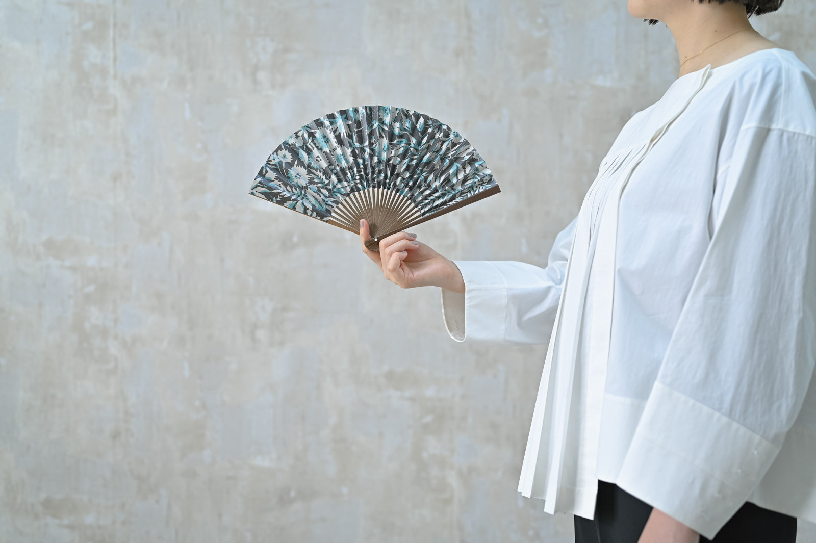 A paper fan made in collaboration with Torie, a kimono maker in Osaka.