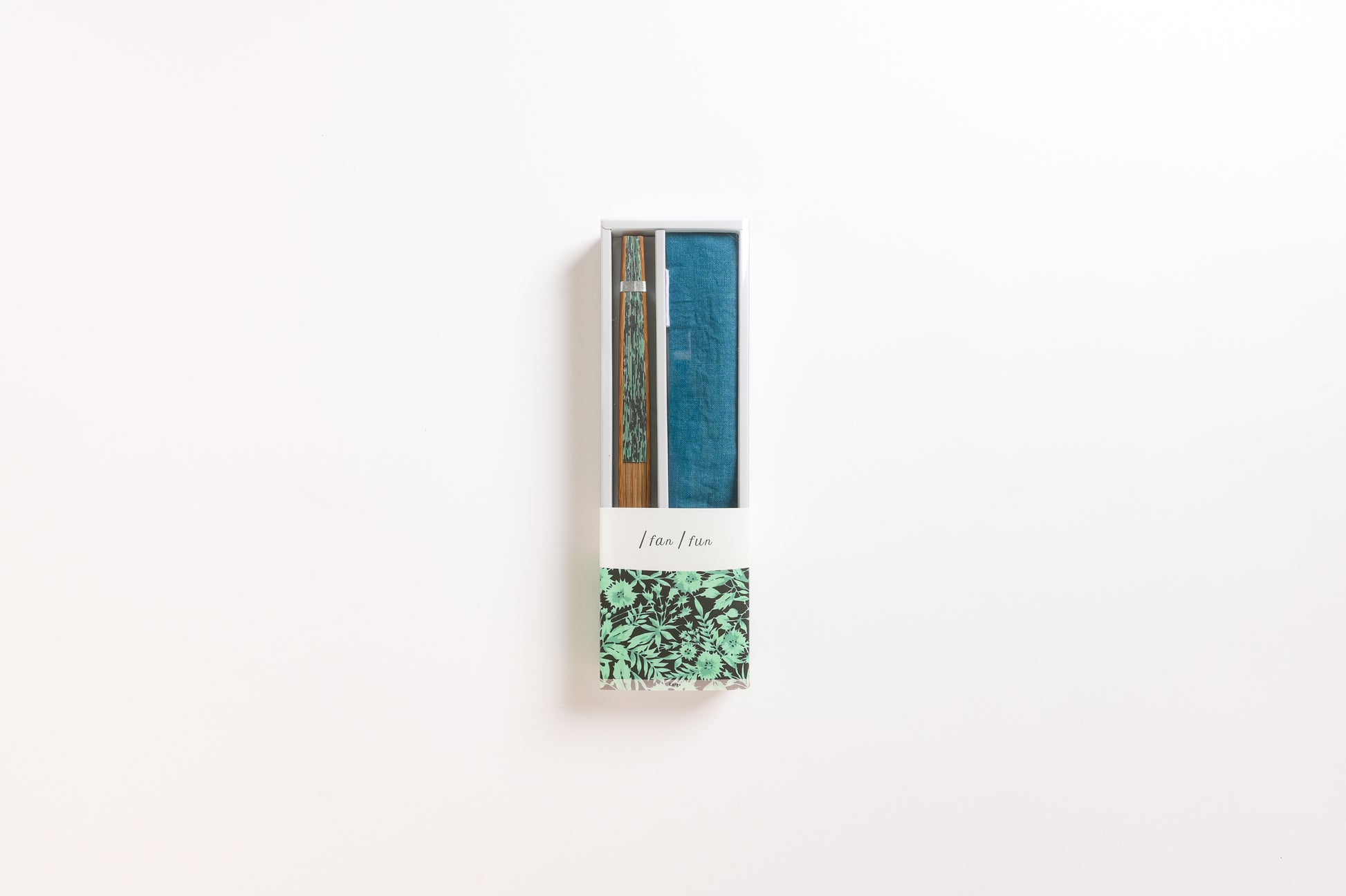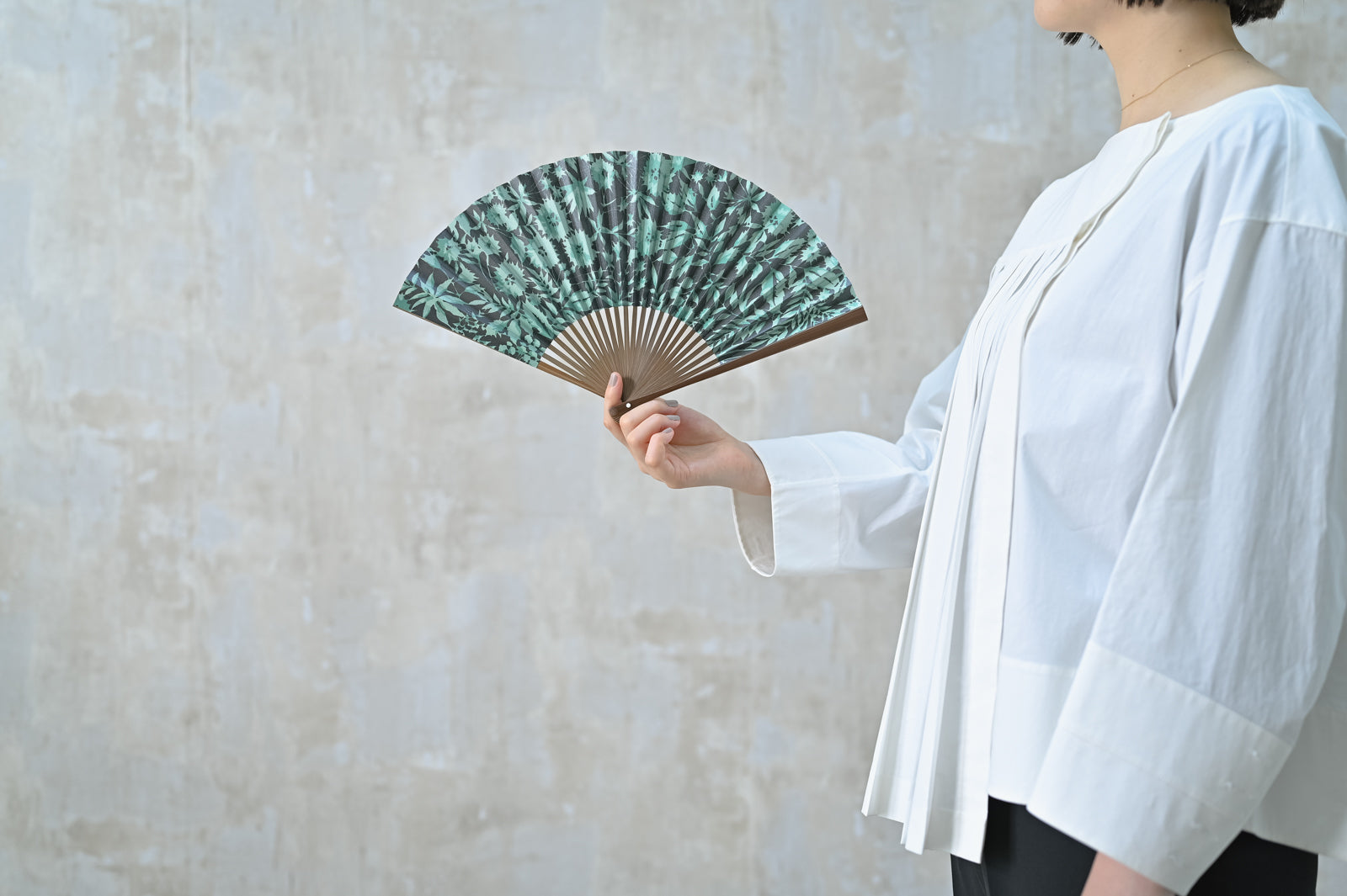 A paper fan made in collaboration with Torie, a kimono maker in Osaka.