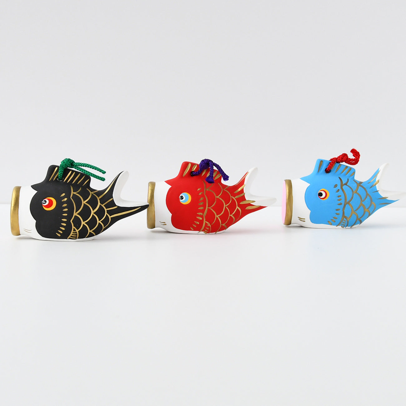 A clay figurine with a motif of carp streamers swimming in the refreshing May sky.