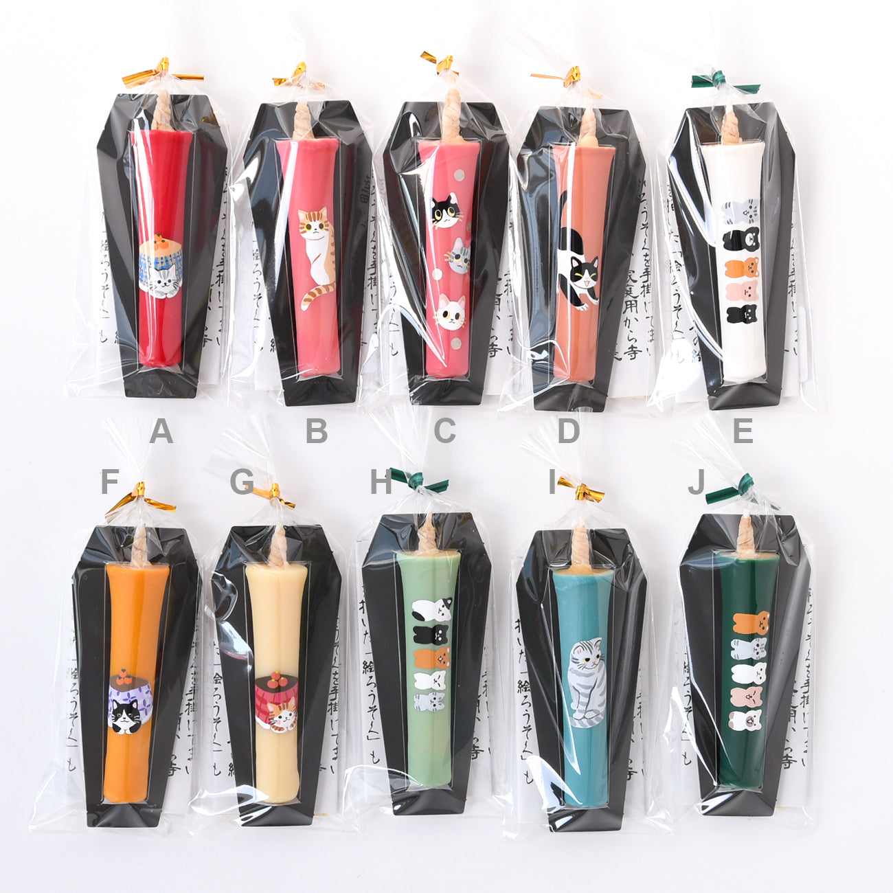限定ネコ絵蠟燭2匁1本入り柄A〜J