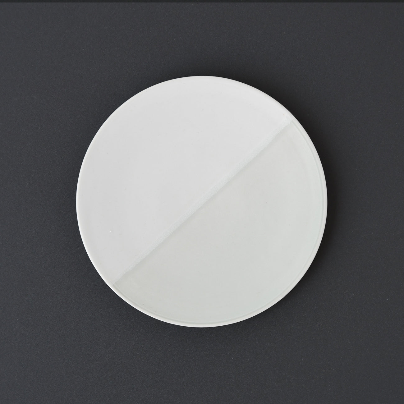 「くっきりとは区切ることのできない曖昧な部分にこそ、新しい美しさの種が生まれるのではな いか」 という仮説に基づき、境界線がメインとなるお皿が誕生しました。