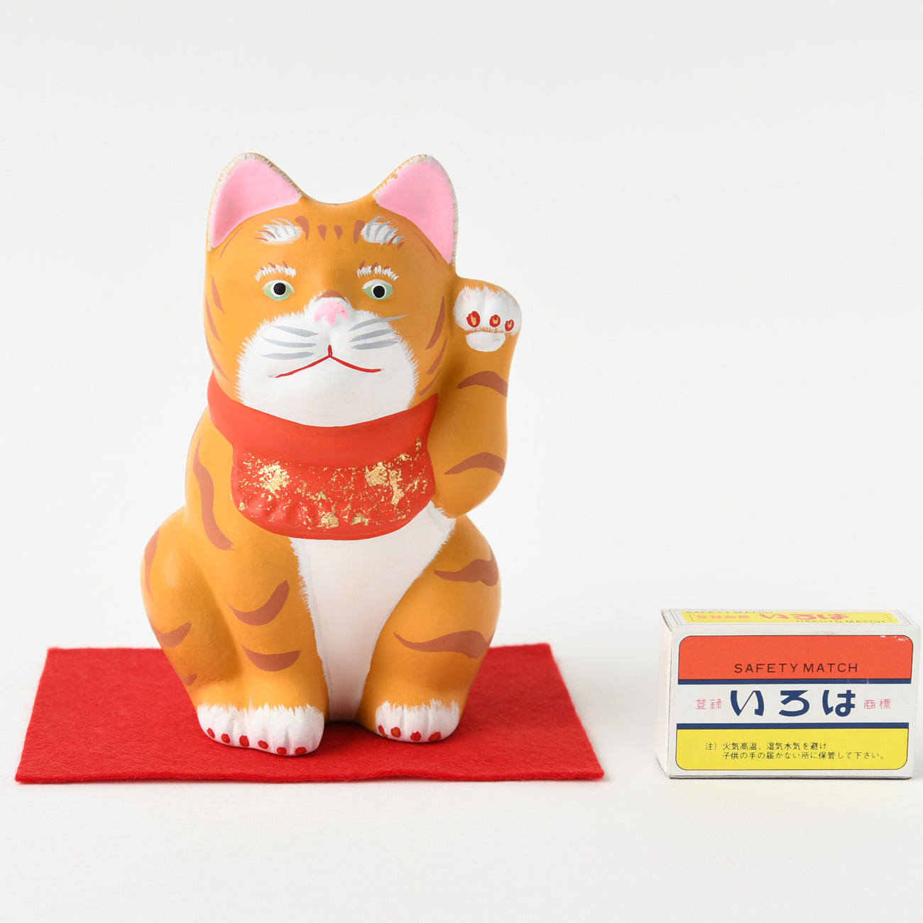 ぽっちゃりとした肉付きの招き猫は島田耕園人形工房の特徴といえます。