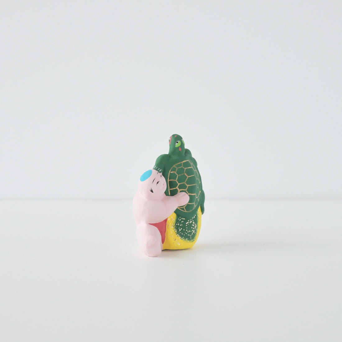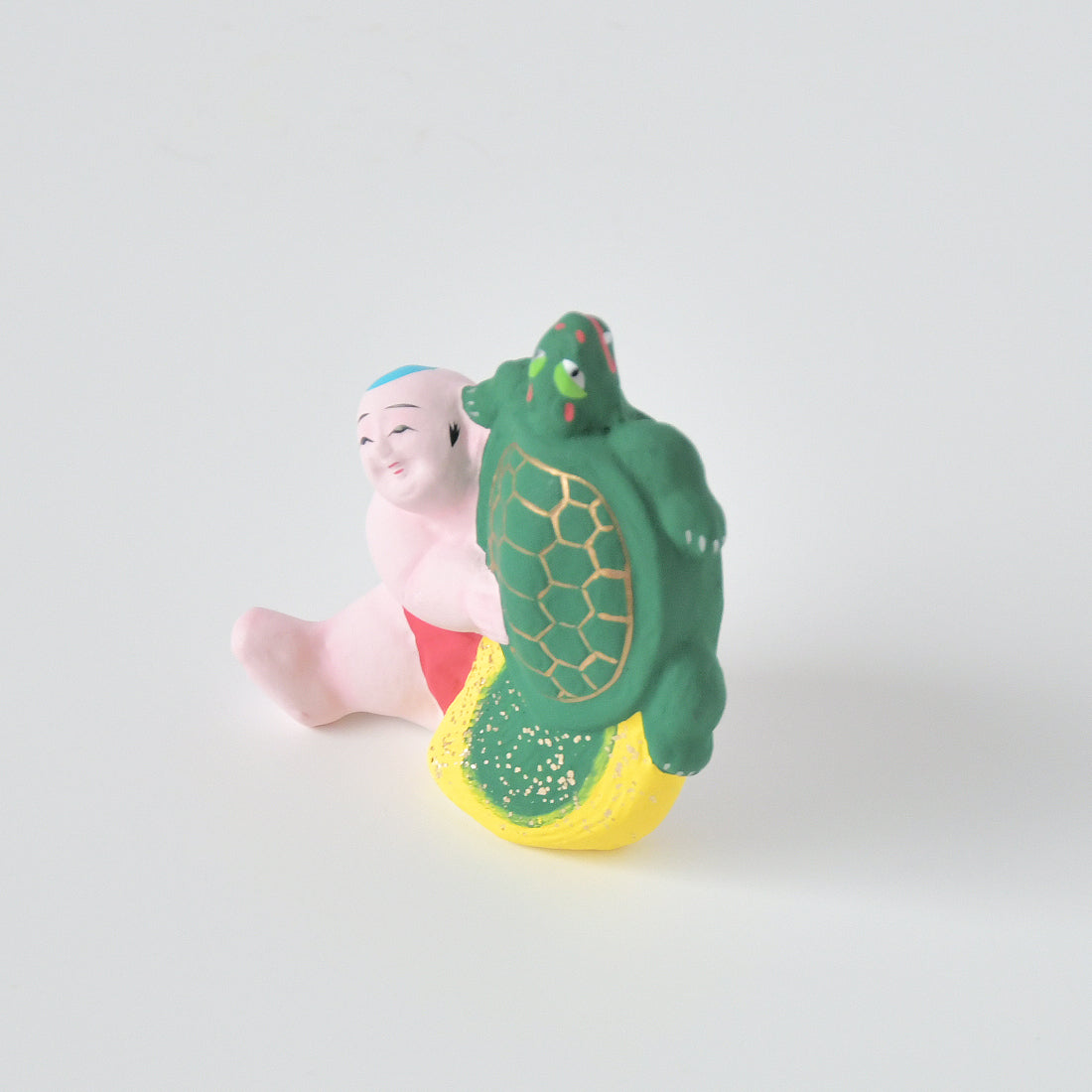 The tortoise is a symbol of longevity and a lucky charm with the meaning of longevity. The turtle's expression is also humorous. The child is also plump and the expression is adorable.