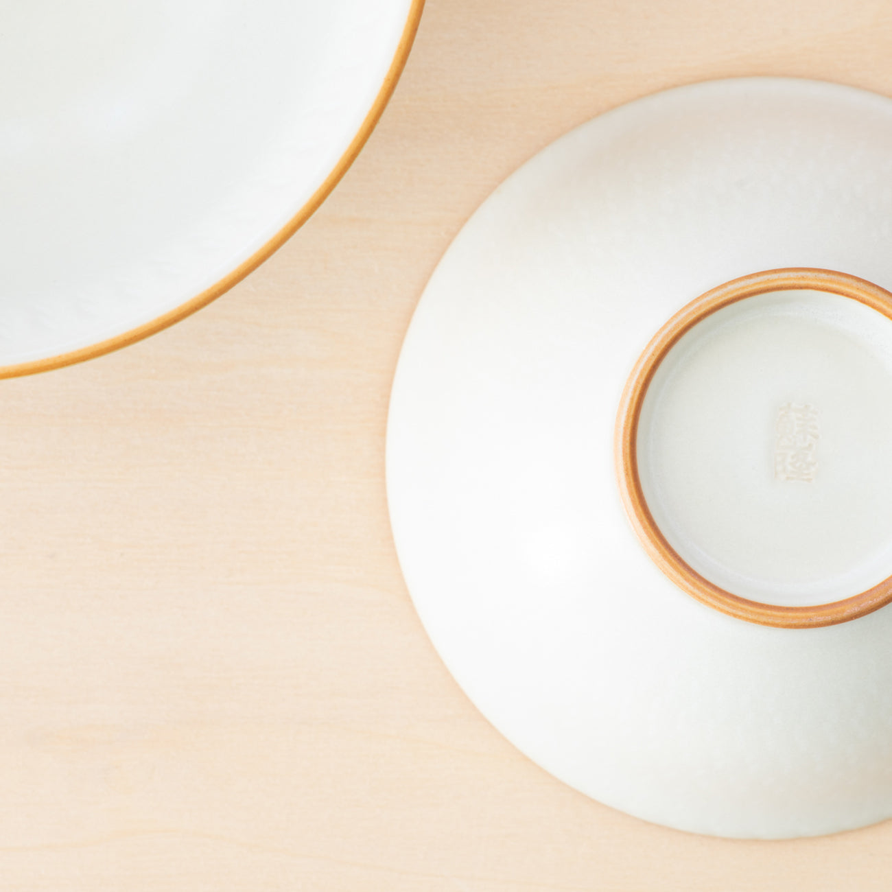 It is a bowl made of white porcelain with a “flying plane” made by processing the spring of an old clock.