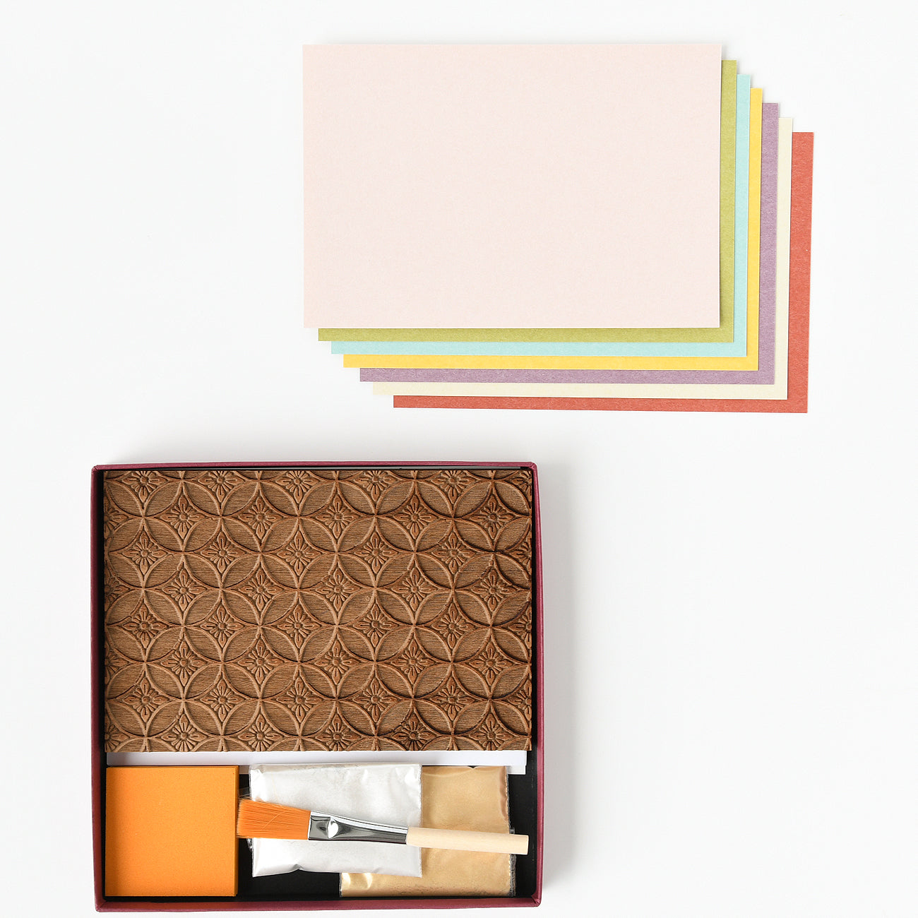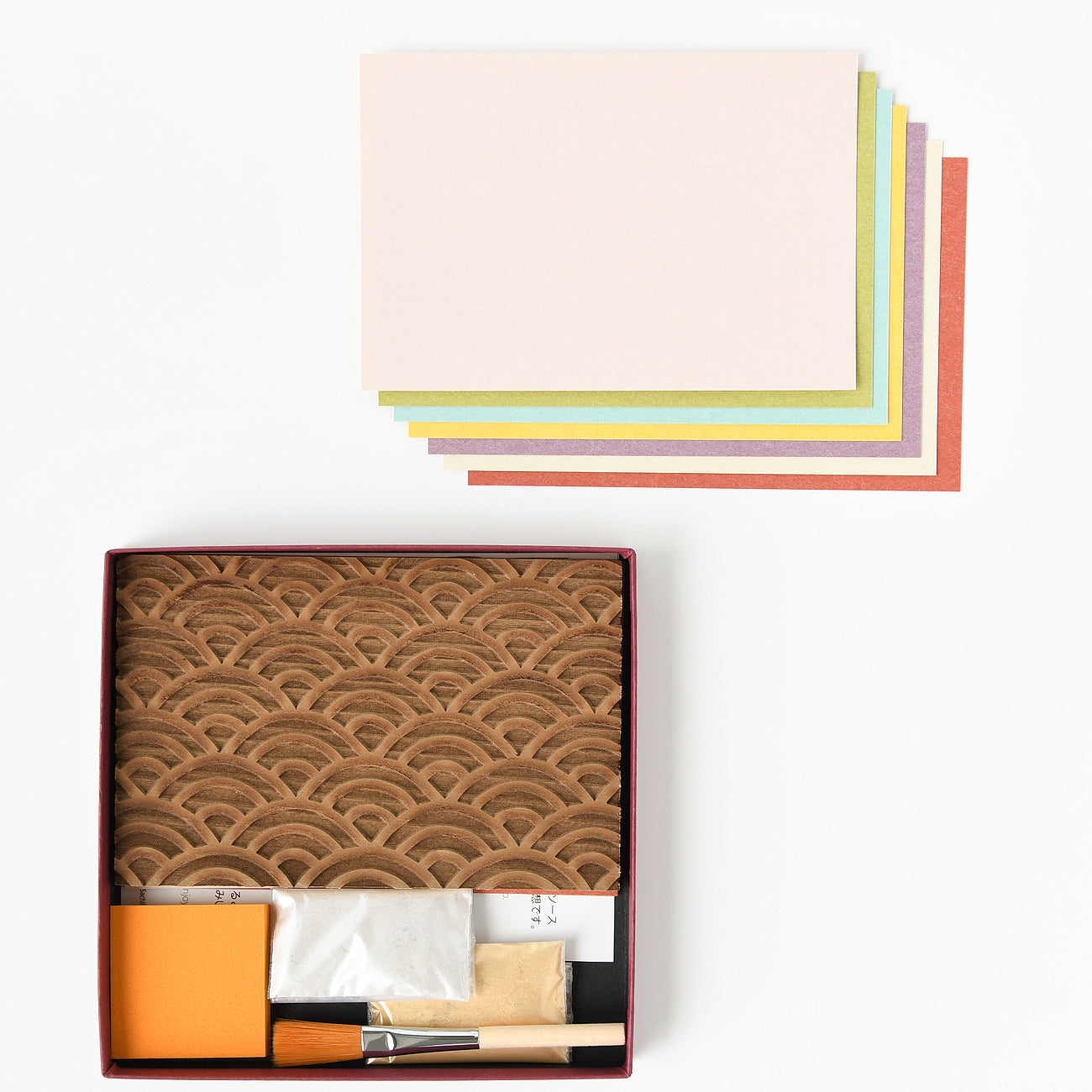 This kit allows you to easily experience the traditional craft of "Kyoto Karakami," which involves printing patterns using woodblocks.