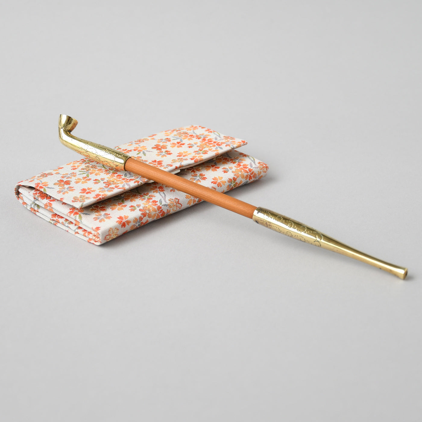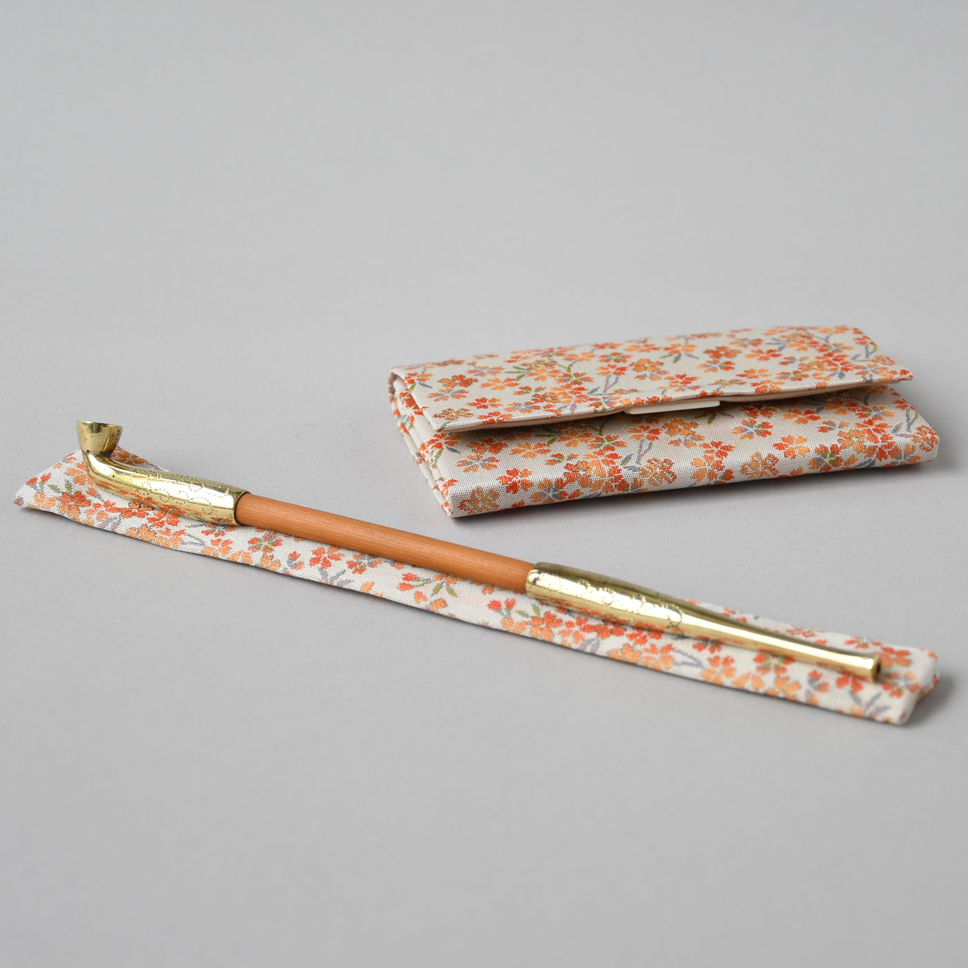 The tobacco pouch and kiseru case are made of Nishijin-ori fabric with a delicate cherry blossom pattern.