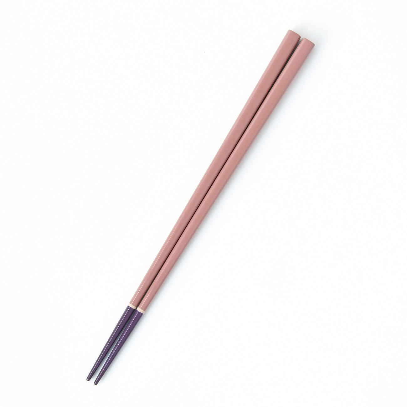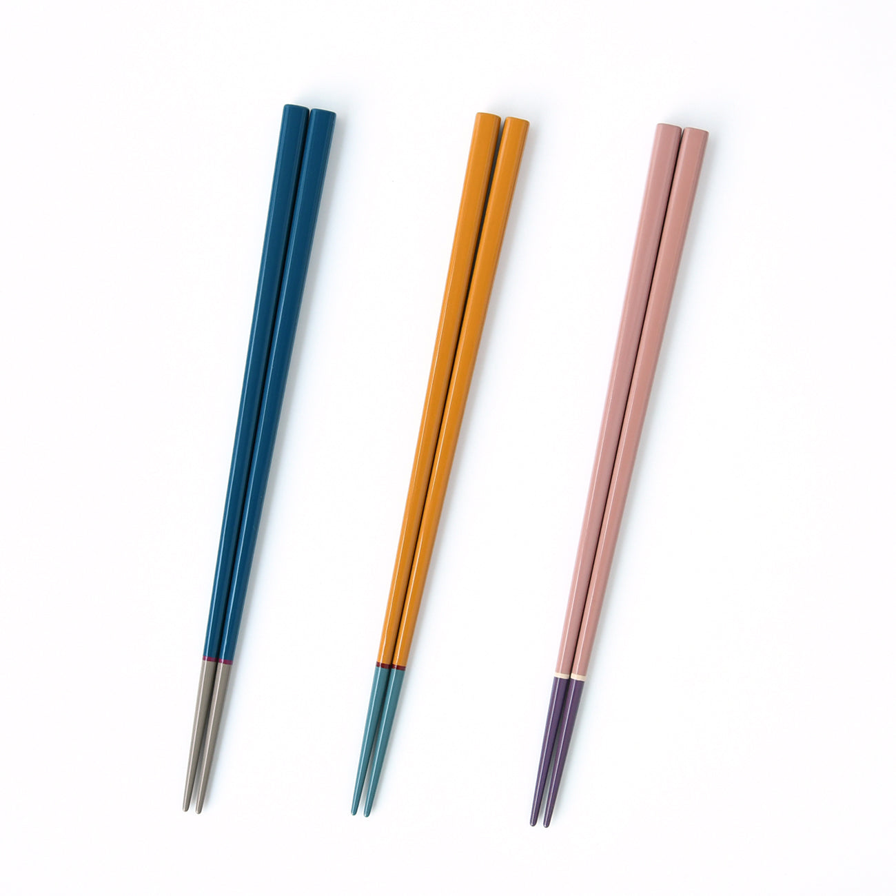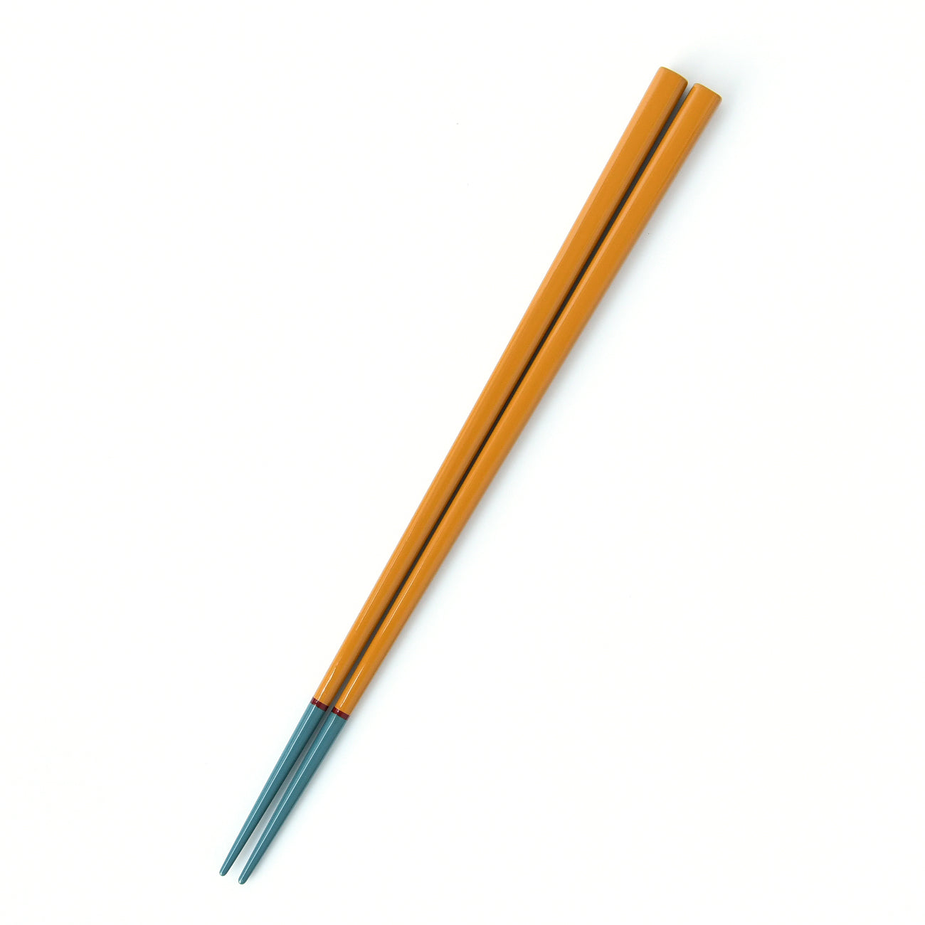 食卓のアクセントになるような配色で、持ち手と箸先で色を変えた塗り箸です。