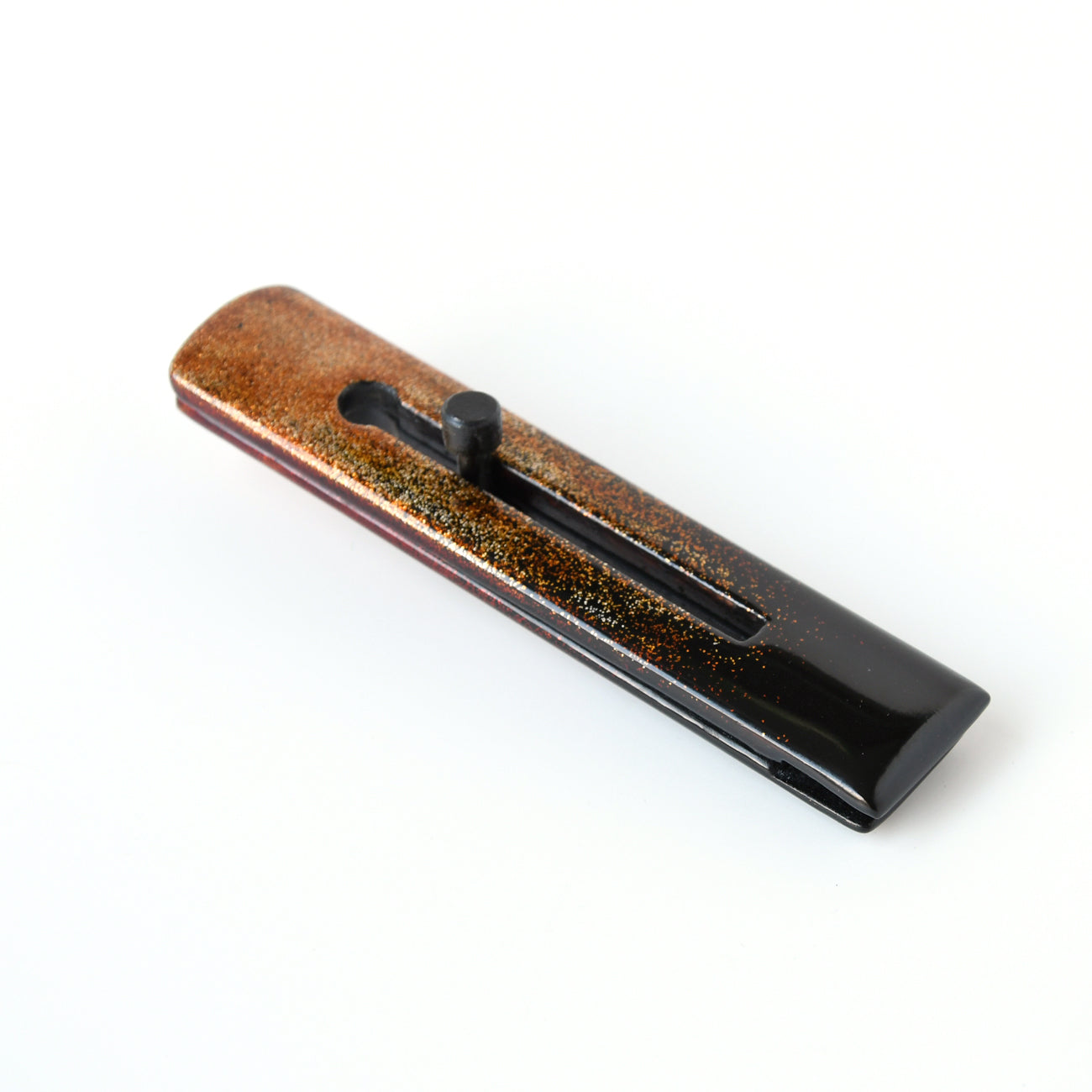 書道具のひとつである墨ばさみ。小さくなった墨をはさんで使う事で、手を汚さずに墨すりが楽になる道具です。