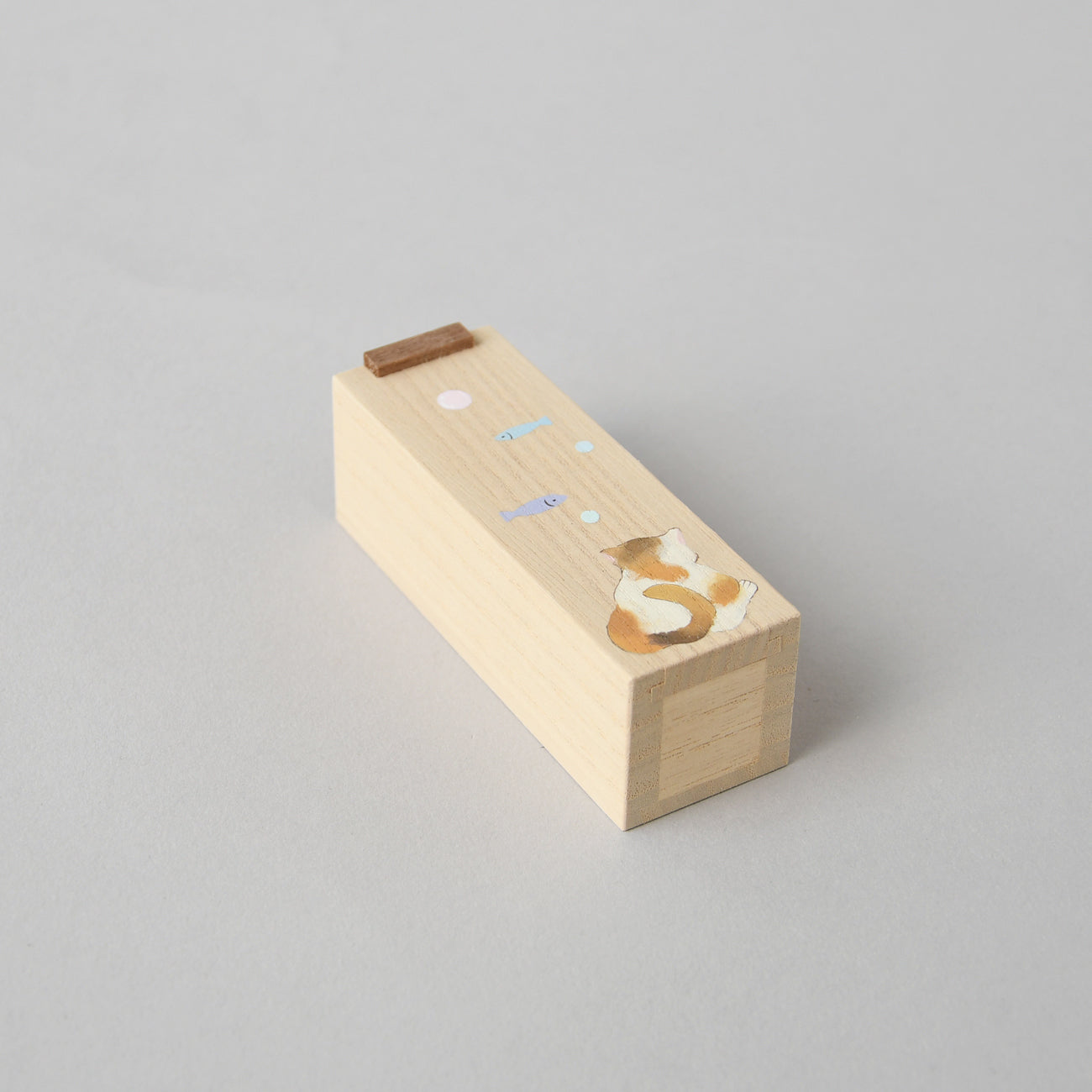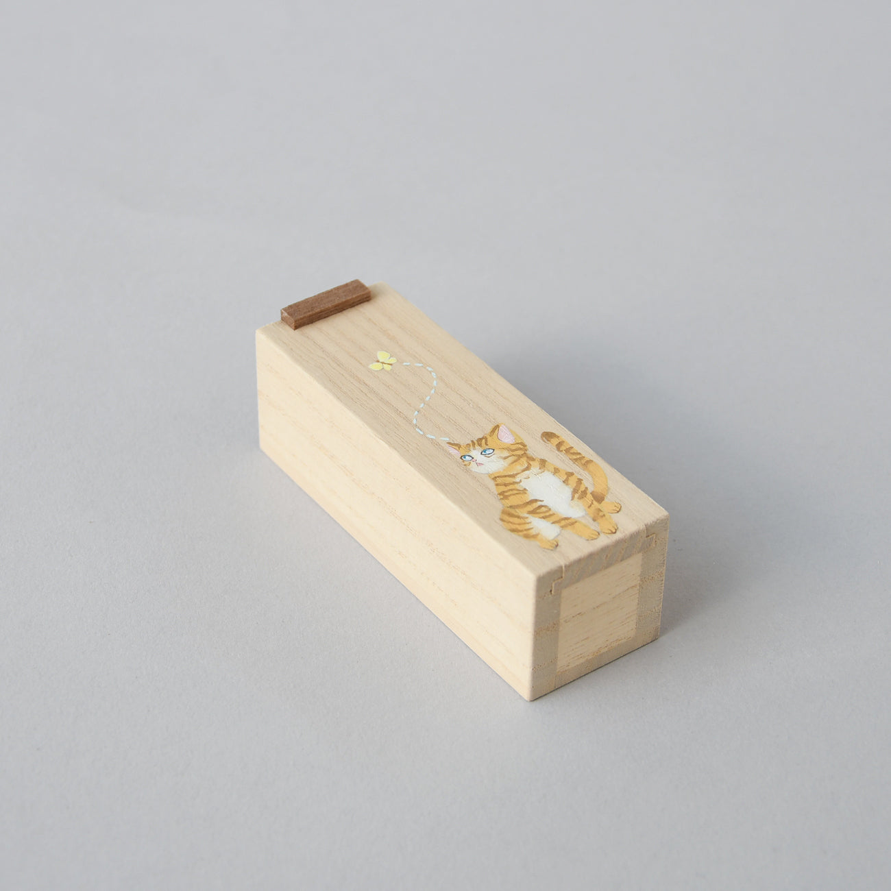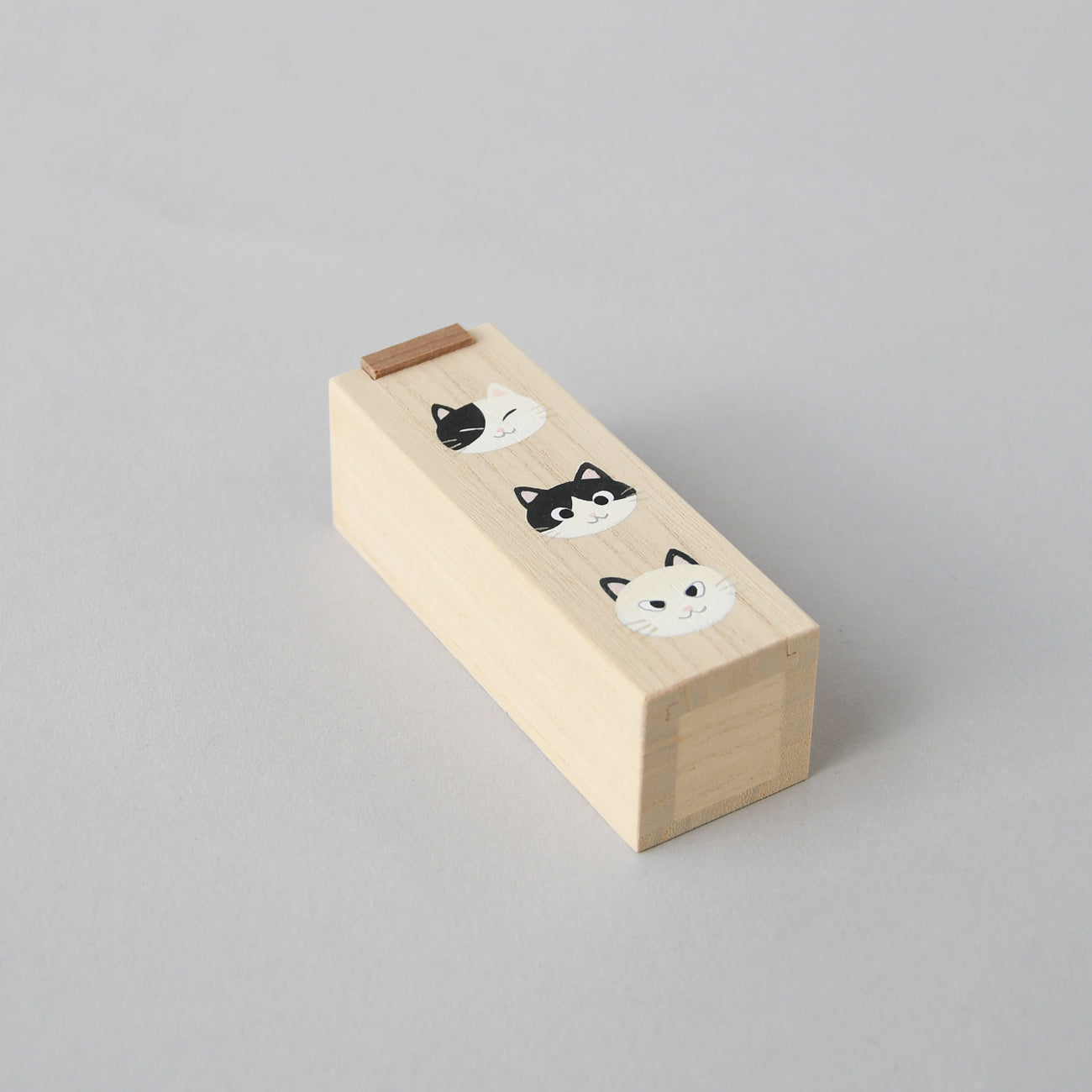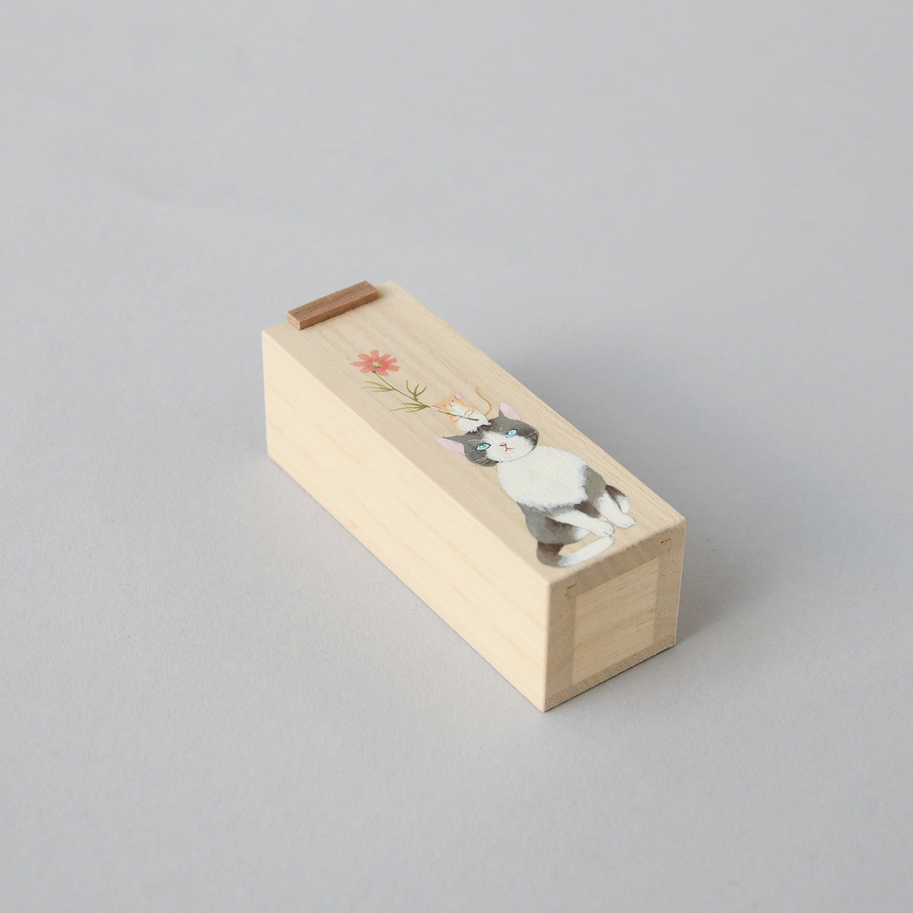 Wooden small box Sliding lid, Cat Pattern 16-19