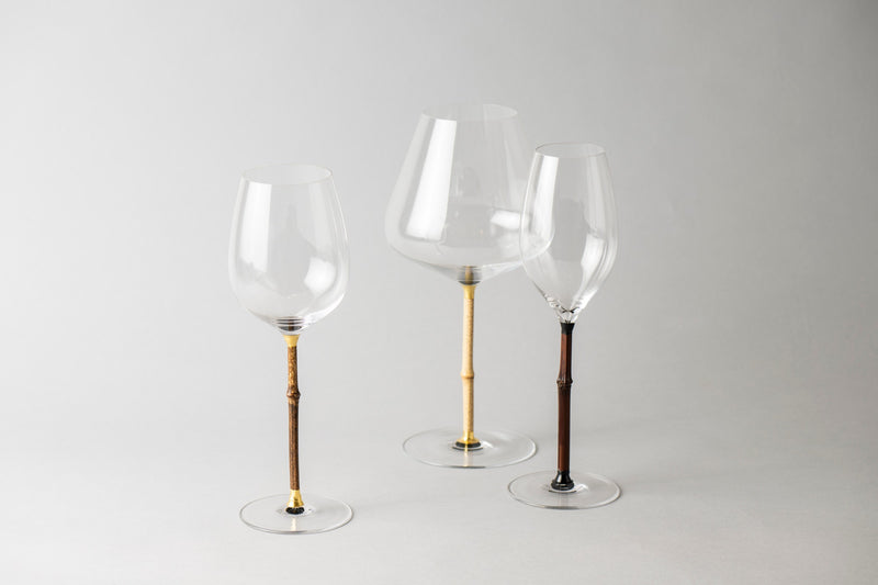 One unique work using natural materials is the Bamboo-Spliced Glass, in which the stem of a wine glass is repaired with bamboo. The strong adhesive power of lacquer unites the very different materials of bamboo and glass, evoking warmth both in its appearance and in the spirit of mending with care