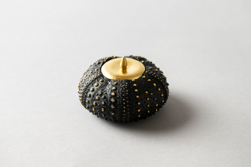 The shell comes from the sea urchin "Gangase", which has proliferated in large numbers and damaged marine ecosystems. The work also conveys a message about the environment and the cycle of life.
