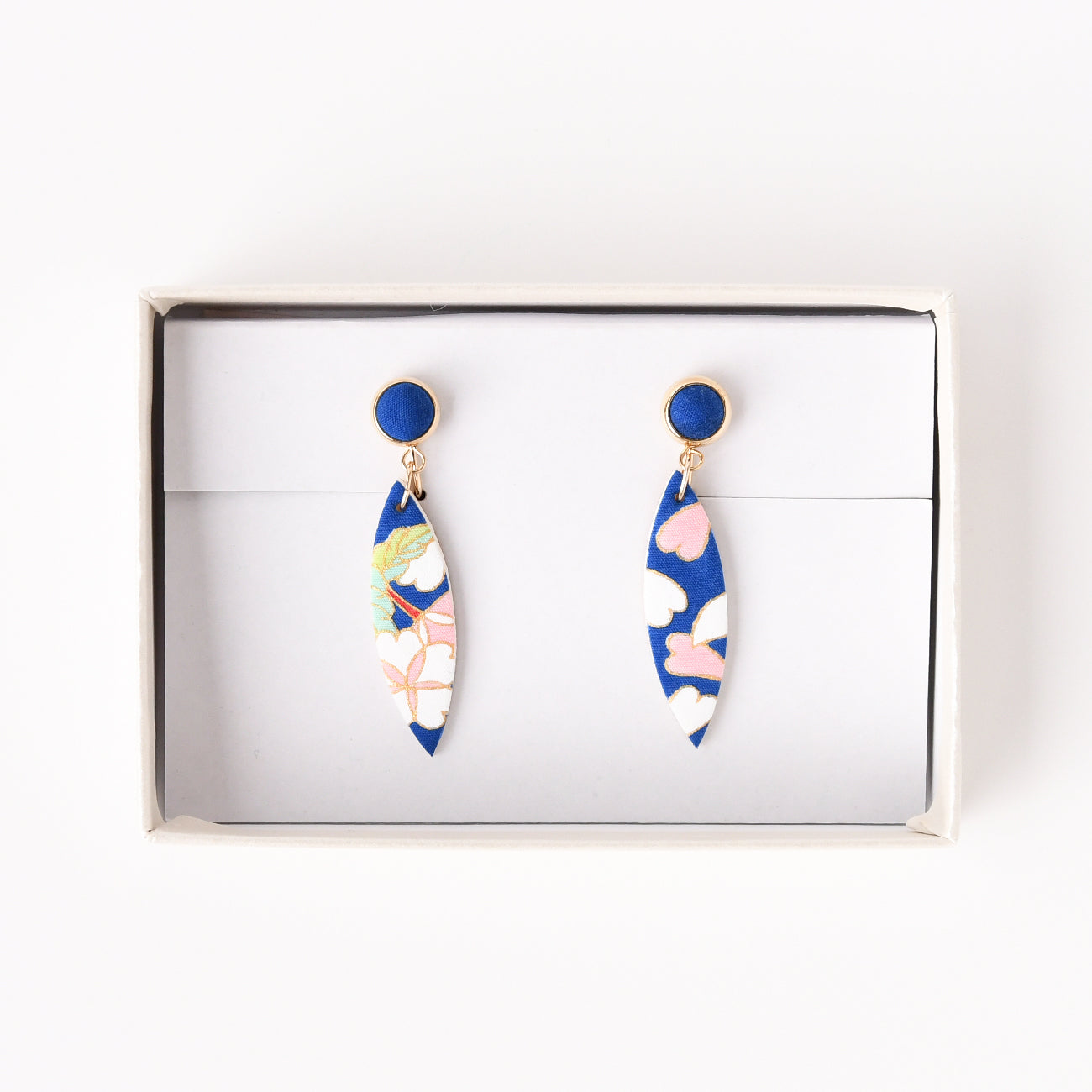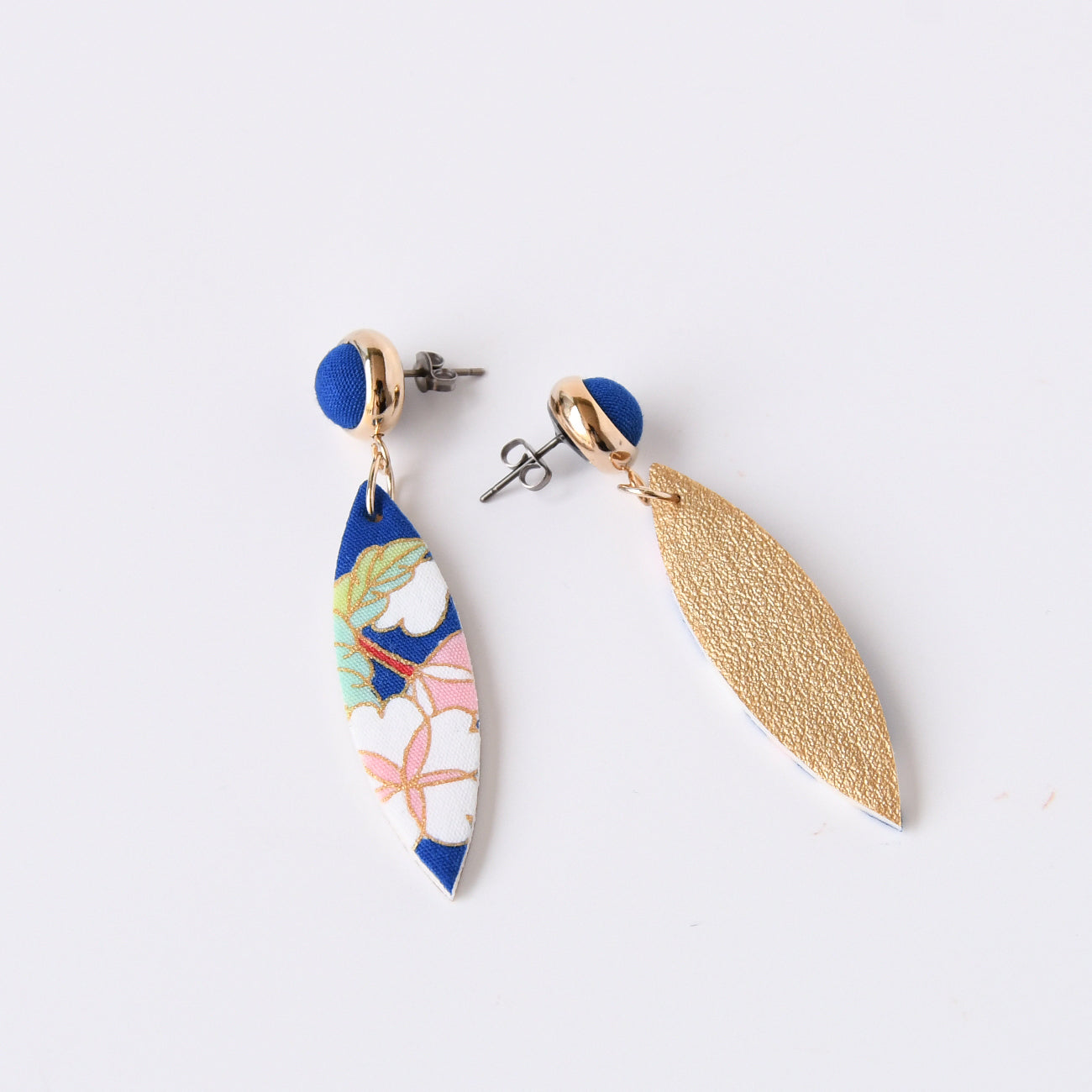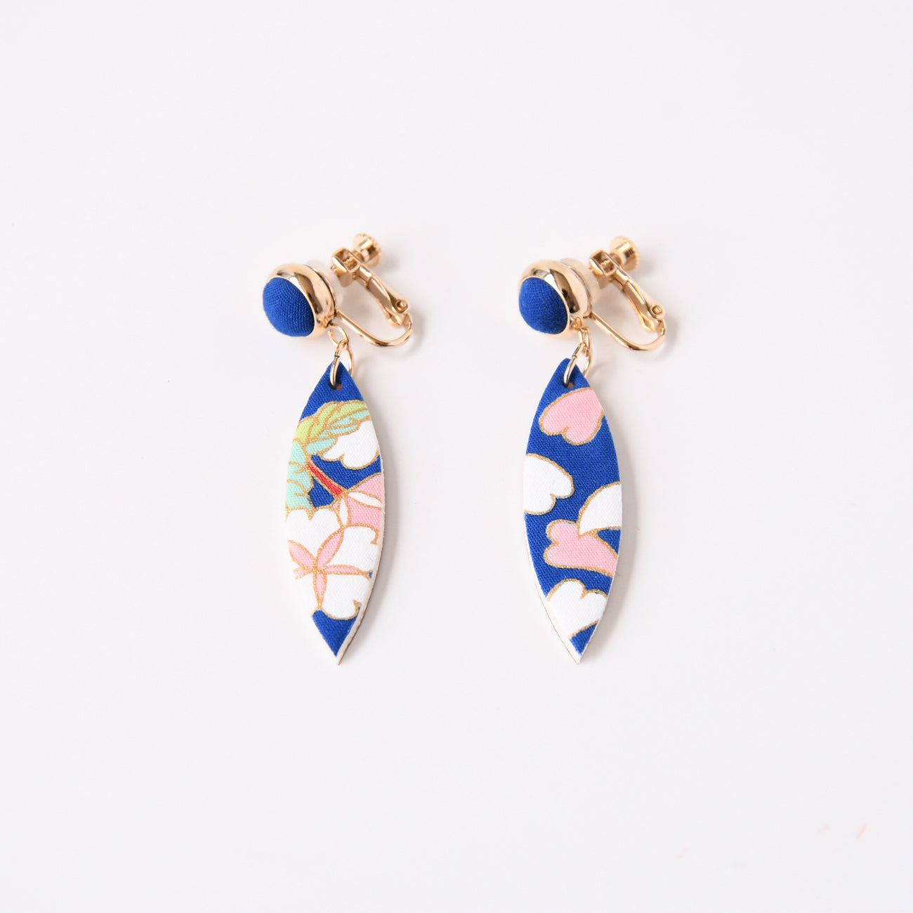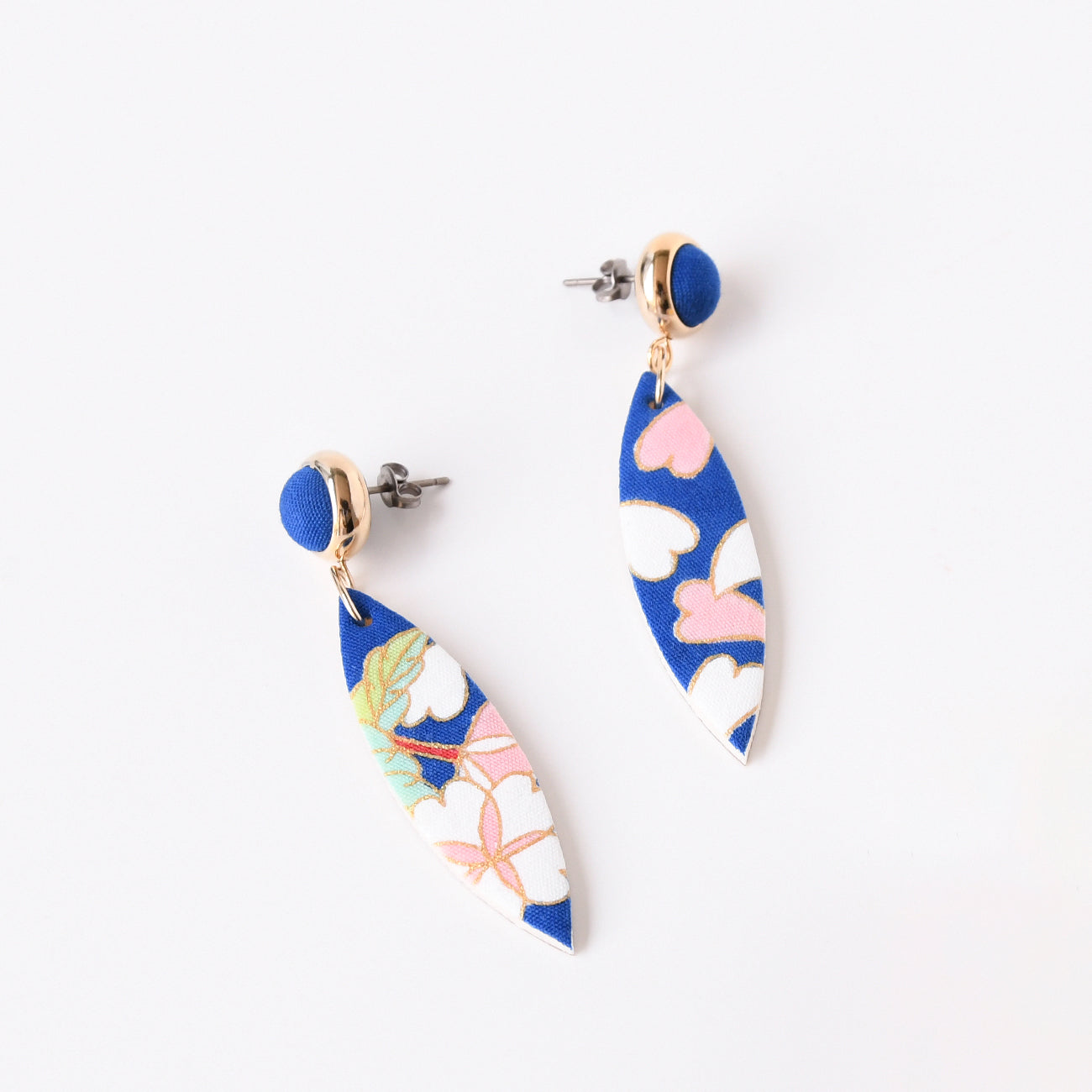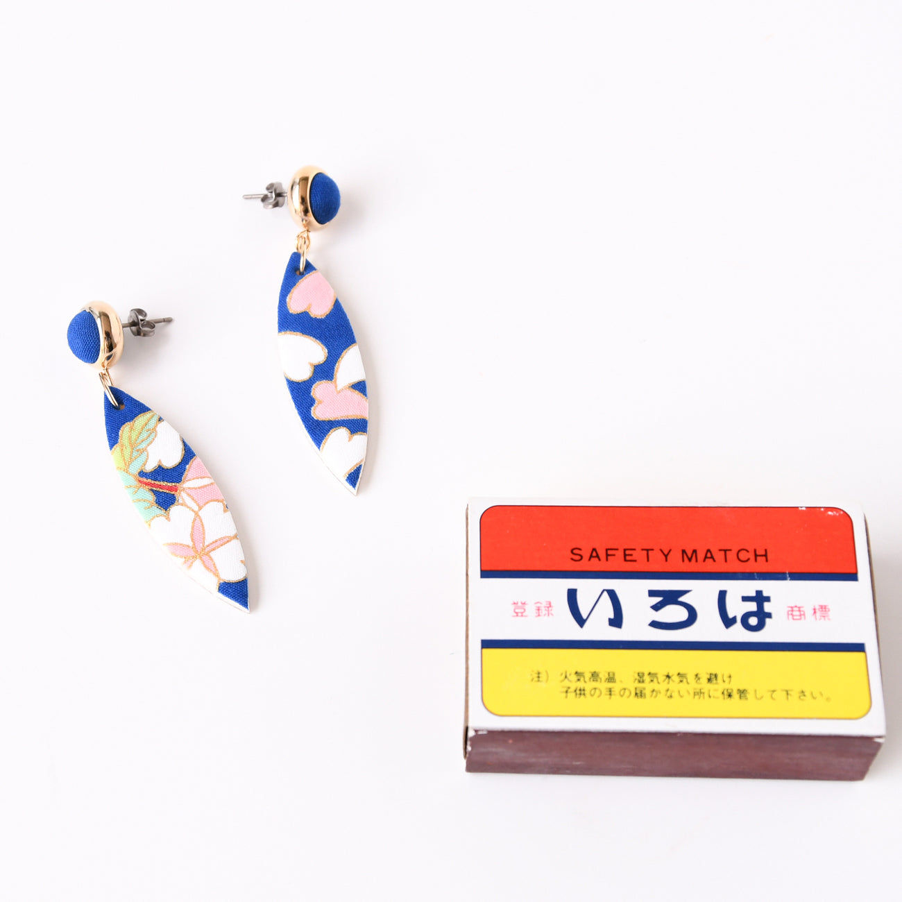 手描友禅 桜ブルー ピアスまたはイヤリング