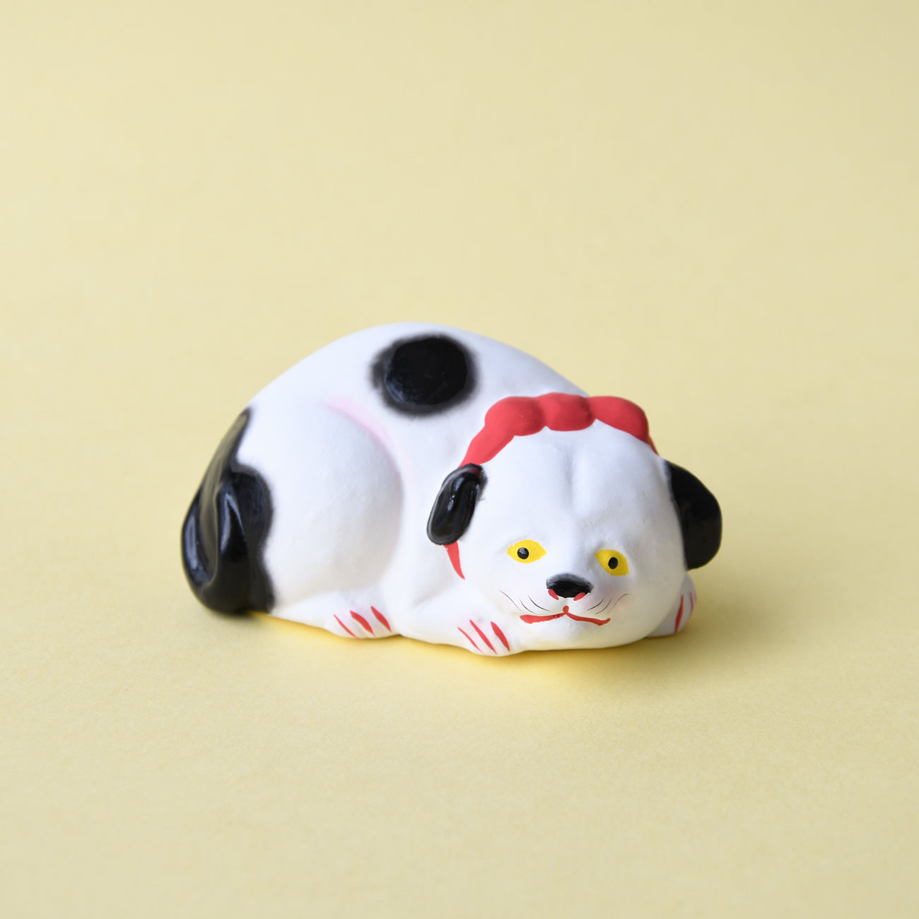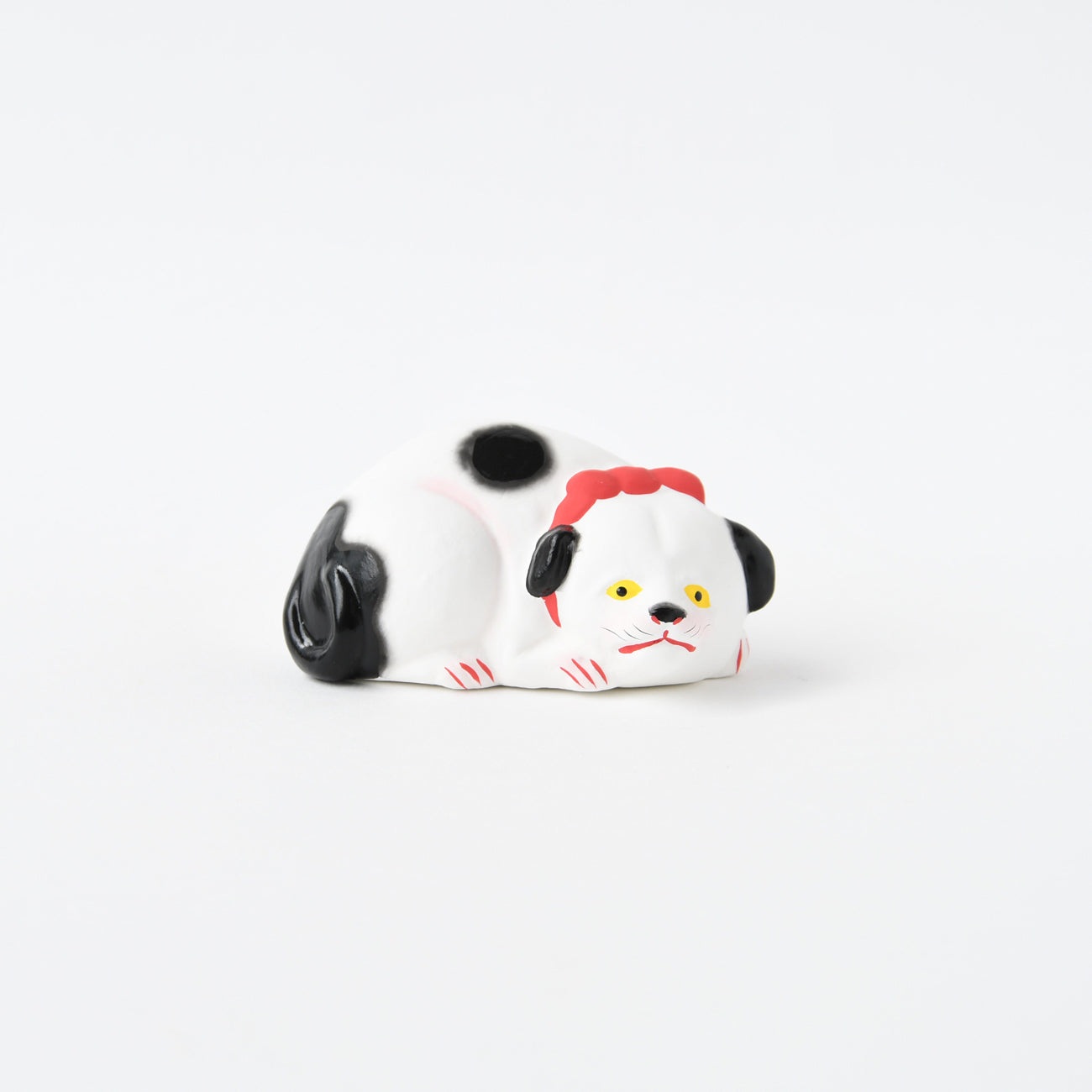 狆は江戸時代から明治時代にかけて人々に愛された小型犬。室内で飼われ、黒い耳と巻いた尻尾が特徴。しかし明治時代になり、各種の洋犬が日本に入ってくるとその人気に押されて次第に姿を消し、大正時代に激減したと云われています。