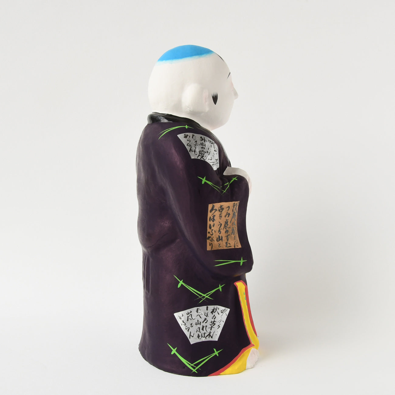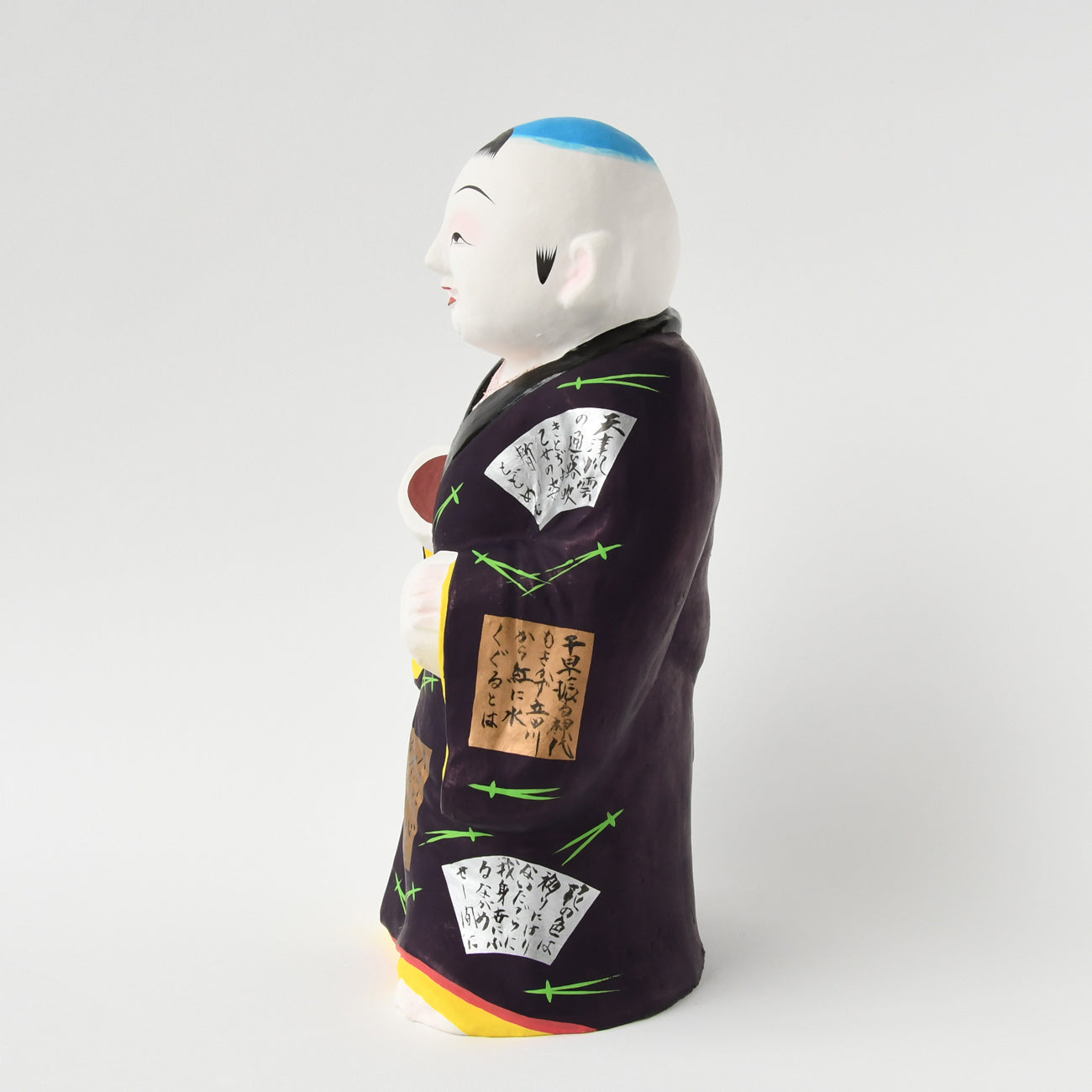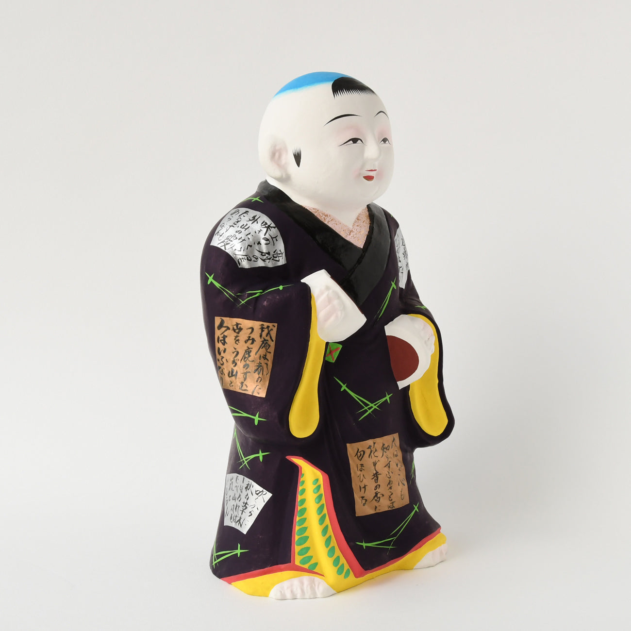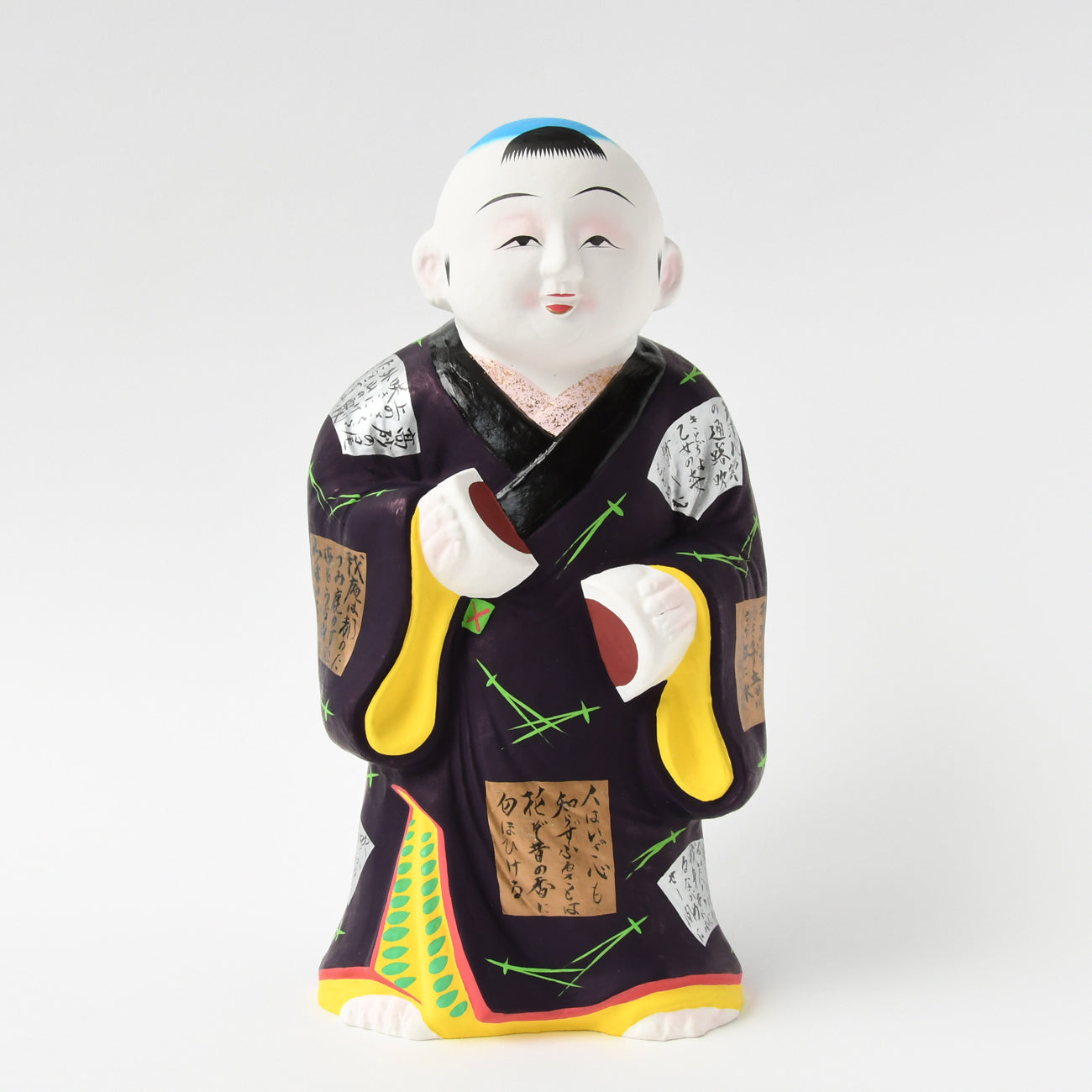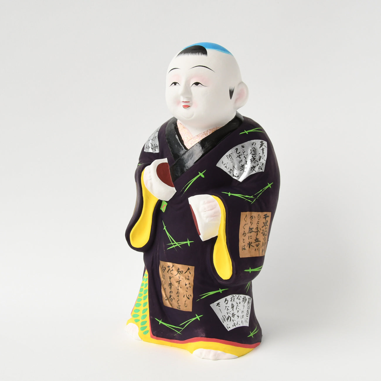 両親のどちらが大事かと聞かれた子供が、手に持っていた饅頭をふたつに割り、「これのどちらが美味しいか」と問い返したという聡明な子供の説話から、子供が利口に育つようにと願いを込めて子供部屋に飾られたり、また、安産祈願や出産祝いの贈り物、さらには、商売繁盛を祈願する人形としても愛されています。