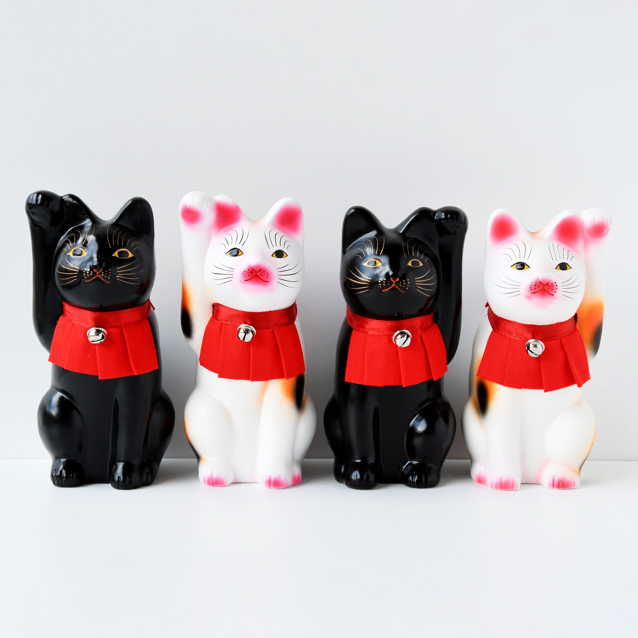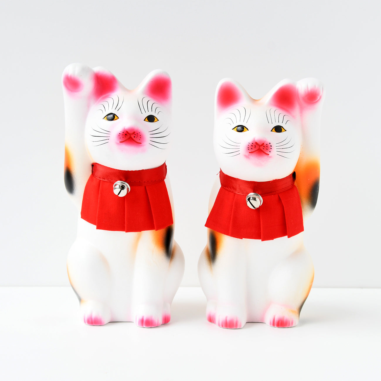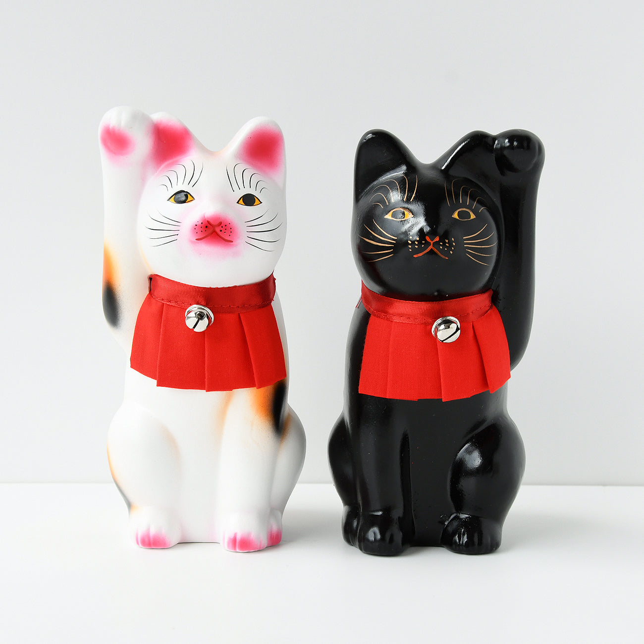 6.5寸 右手招き猫 三毛と左手招き猫 黒