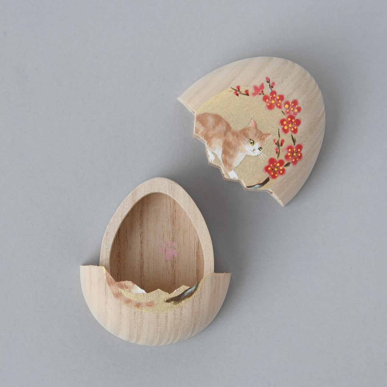 This paulownia wood box features the cute shape of an egg box. It opens and closes with a sliding mechanism. The jagged opening is also one of the reasons for its popularity. When opened, a pattern inspired by the picture on the front peeks out.