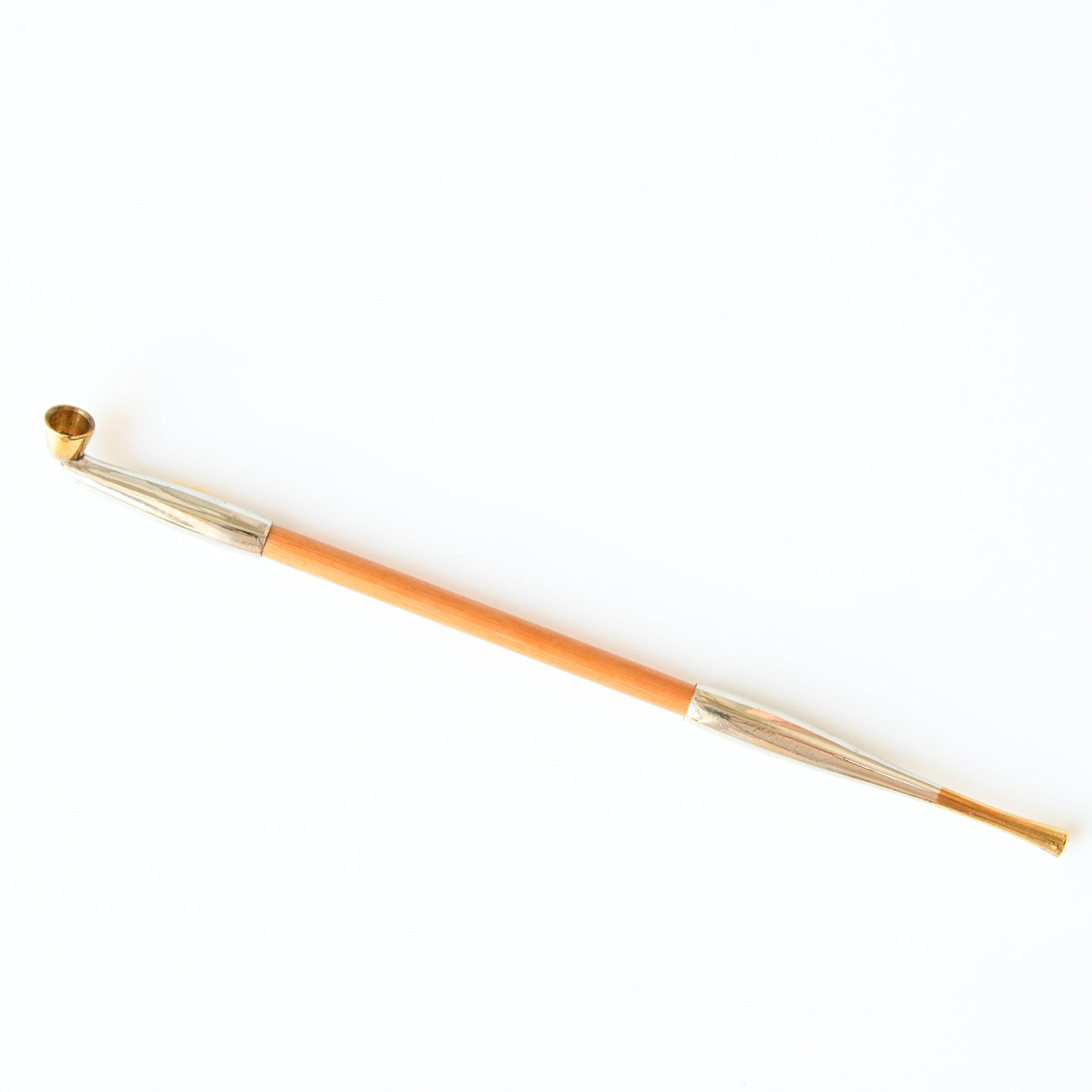 金具部分の全体は洋銀、火皿と吸い口に真鍮を継ぎました。真鍮のくすみと洋銀の風合いが愉しめます。
