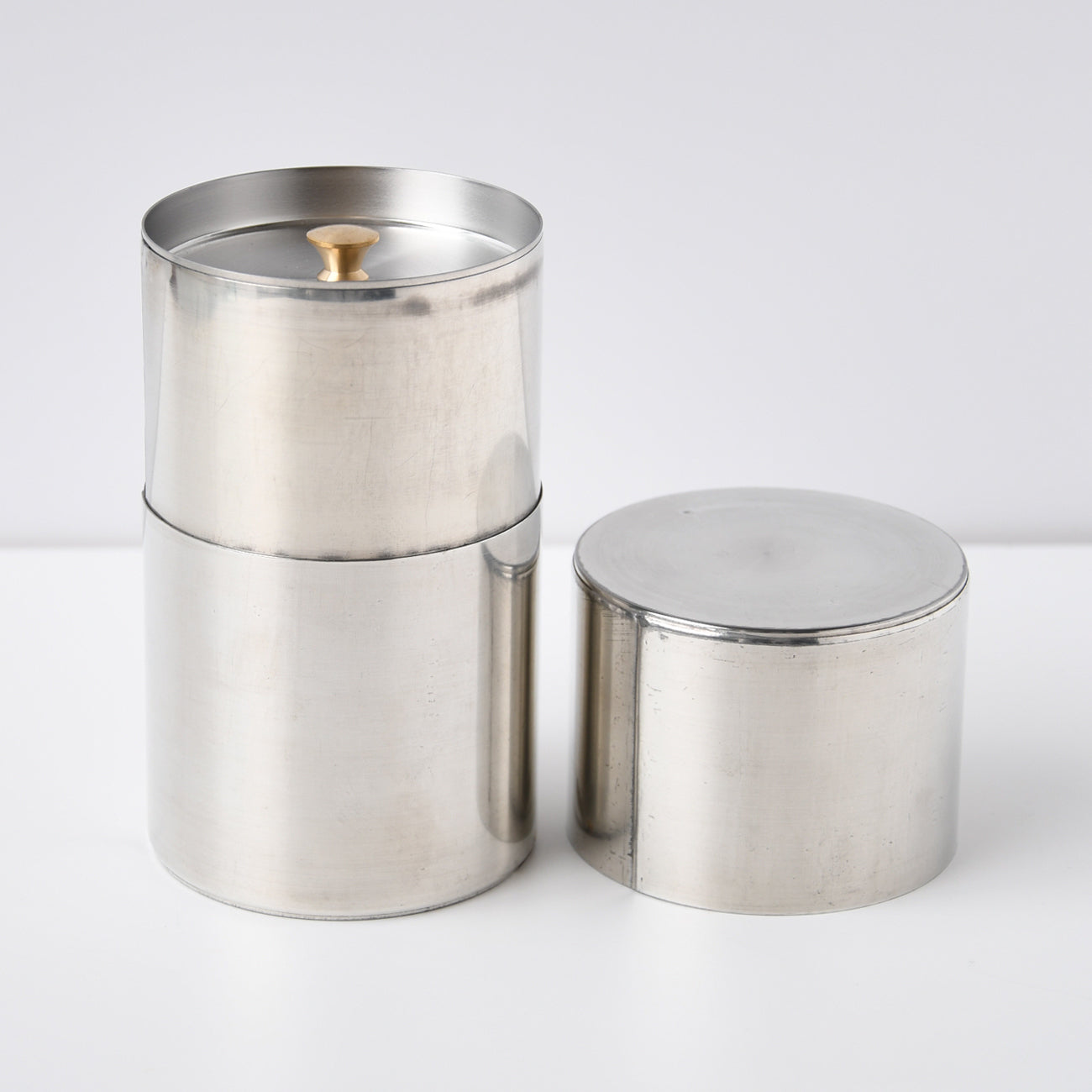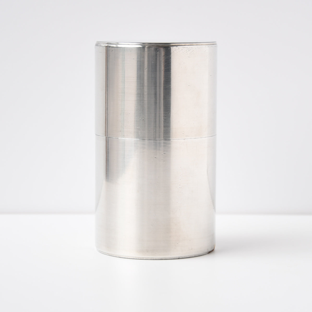 こちらの茶筒は素材そのものを生かした塗装無しのもの。金属特有の手触りと柔らかい光沢が使い込むごとに深まります。