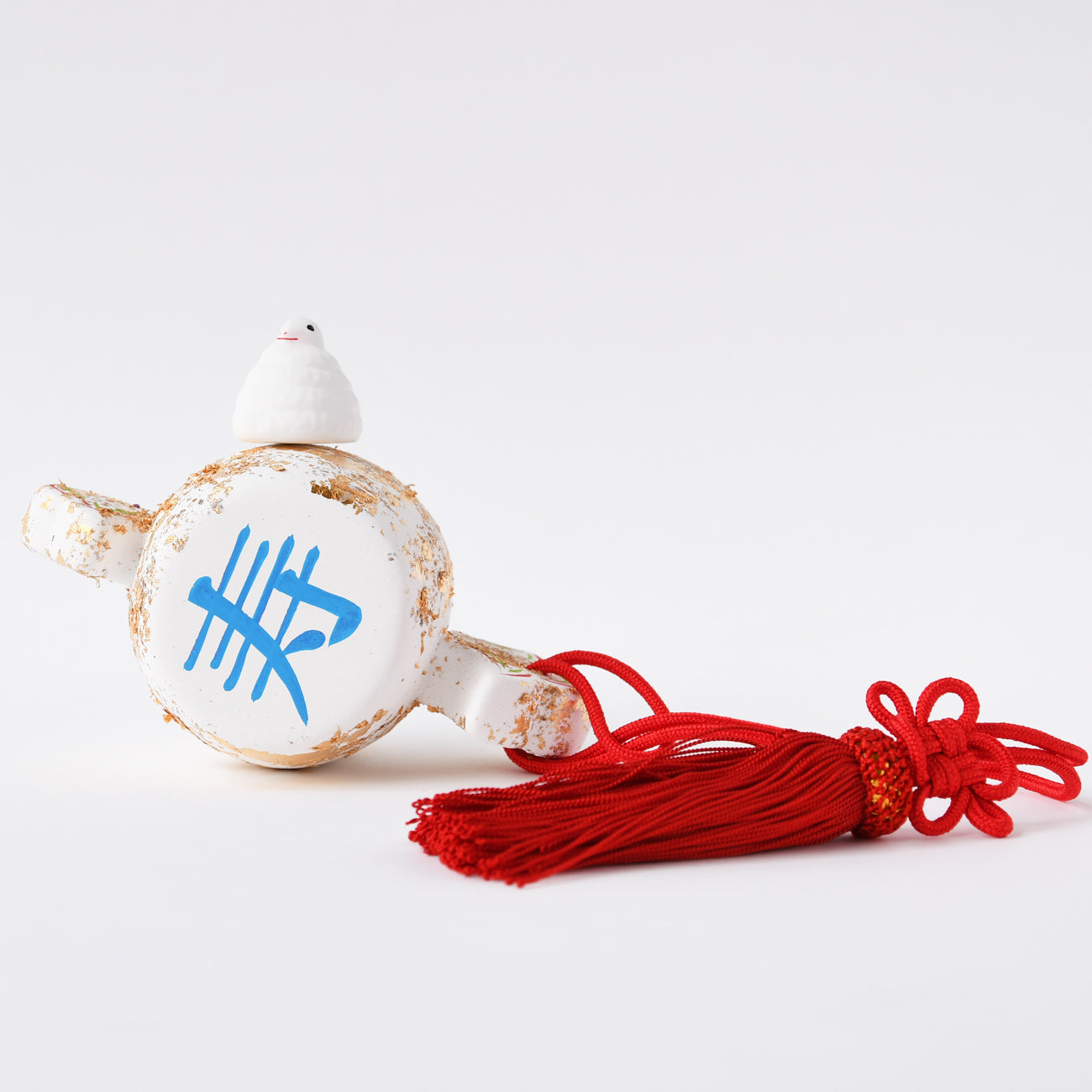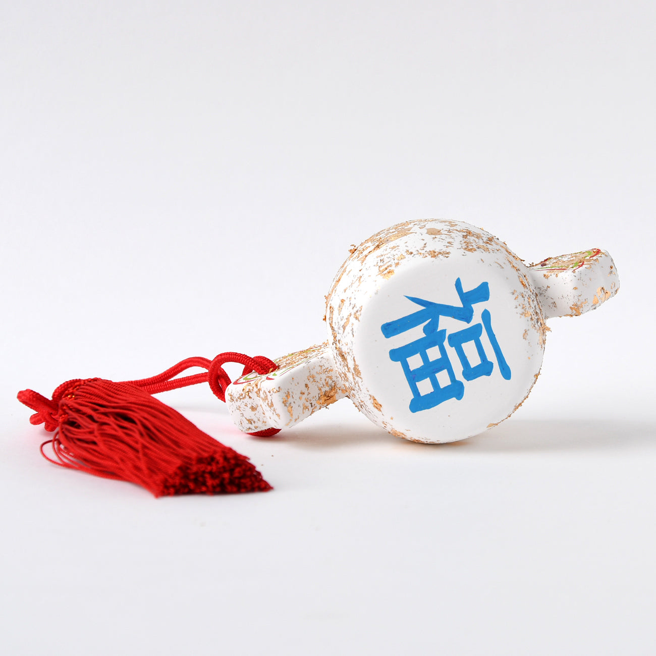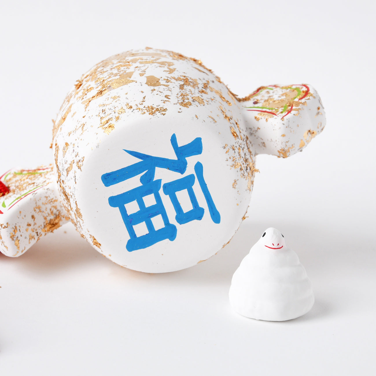 おめでたい打出の小槌にちょこんと乗せれます。小槌に「寿」と「福」の文字。