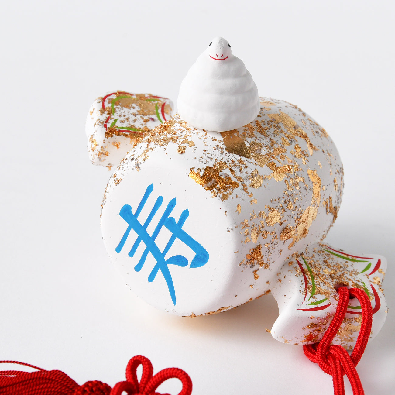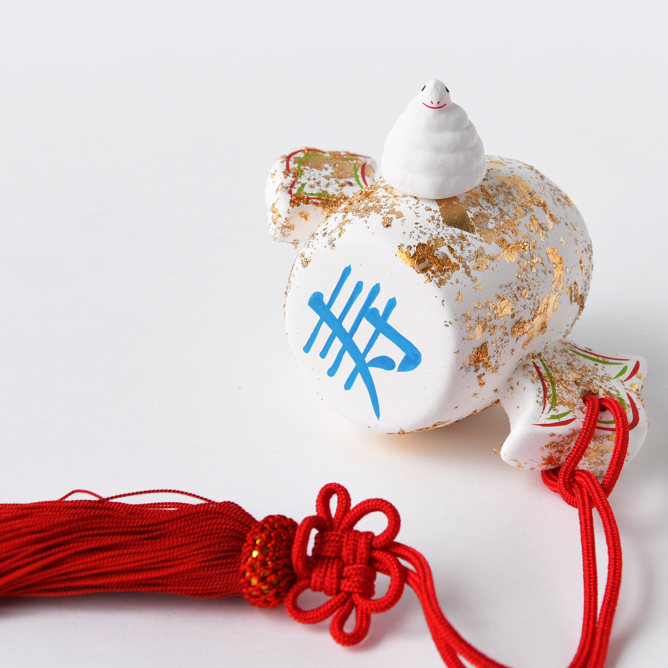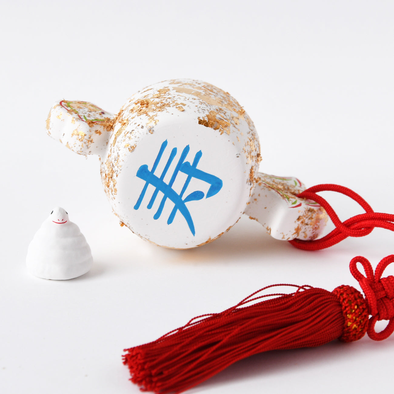 おめでたい打出の小槌にちょこんと乗せれます。小槌に「寿」と「福」の文字。