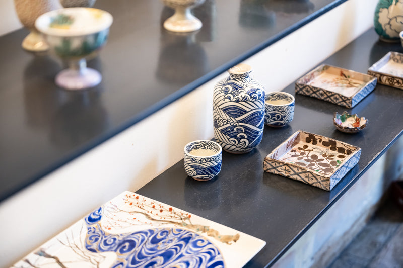 高度なロクロ技から生まれる端正なうつわを、艶やかな花鳥風月や金彩で彩る清水焼の絵付けの世界。全国でさまざまな技法が発展してきましたが、その優美な佇まいは、かつて都があった京都ならではのもの。