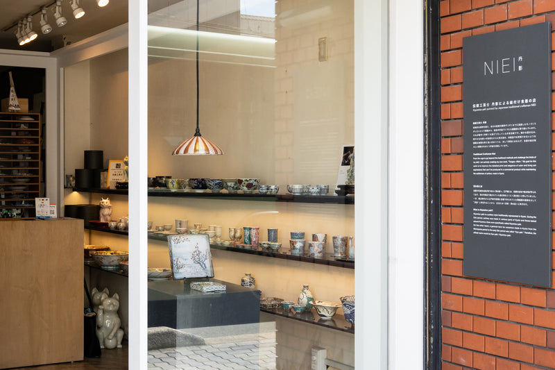 陶号 丹影(にえい)として活躍する光武みゆきさんは、清水焼の絵付け師として技を磨いた経験を活かし、「絵付け表現のさらなる可能性を探求、発信したい」と清水焼のブランド『NIEI』を立ち上げました。工房兼ショップを構えるのは、京都市の東山三条エリア。