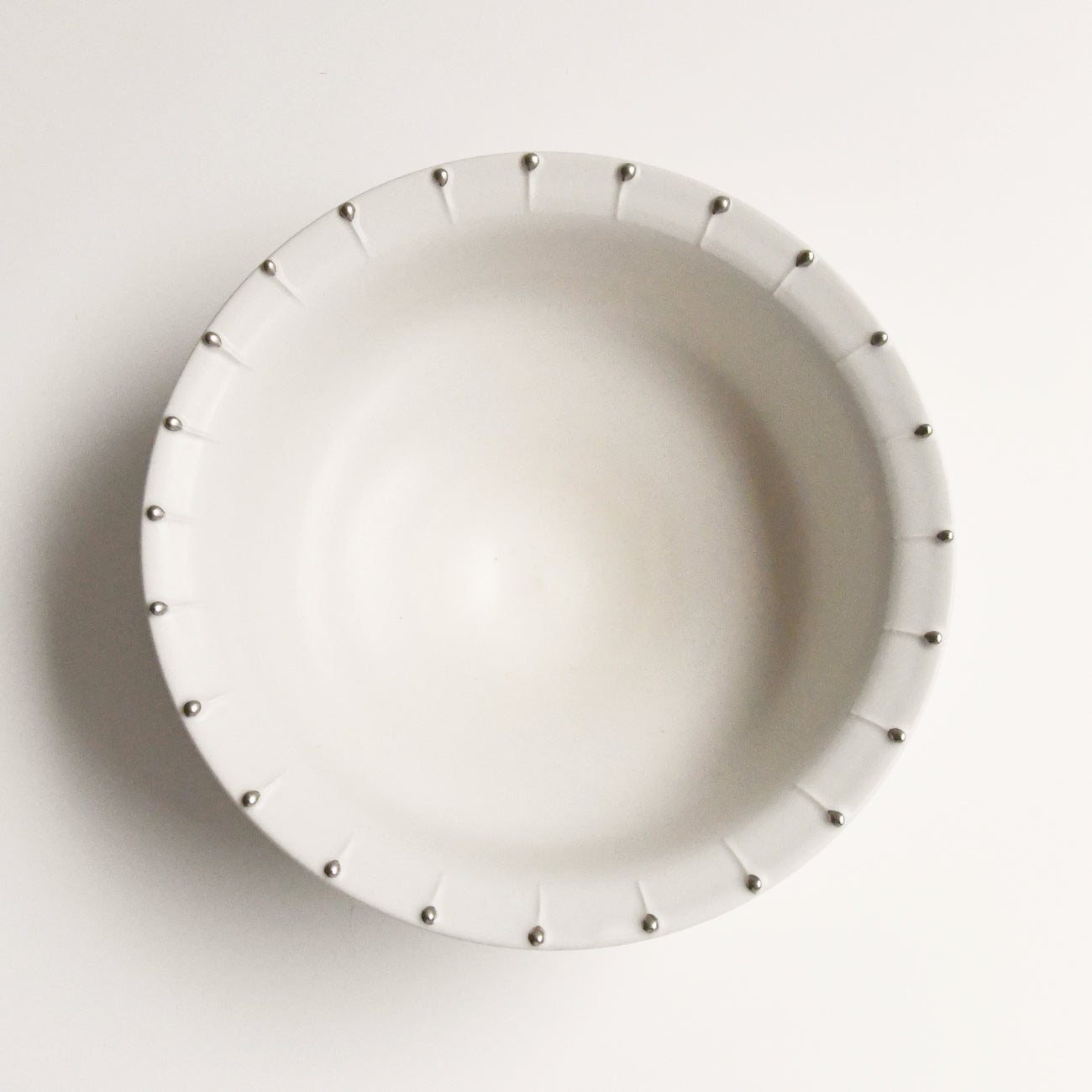 やわらかな質感の白です。縁にはイッチンにプラチナでかざりつけられています。