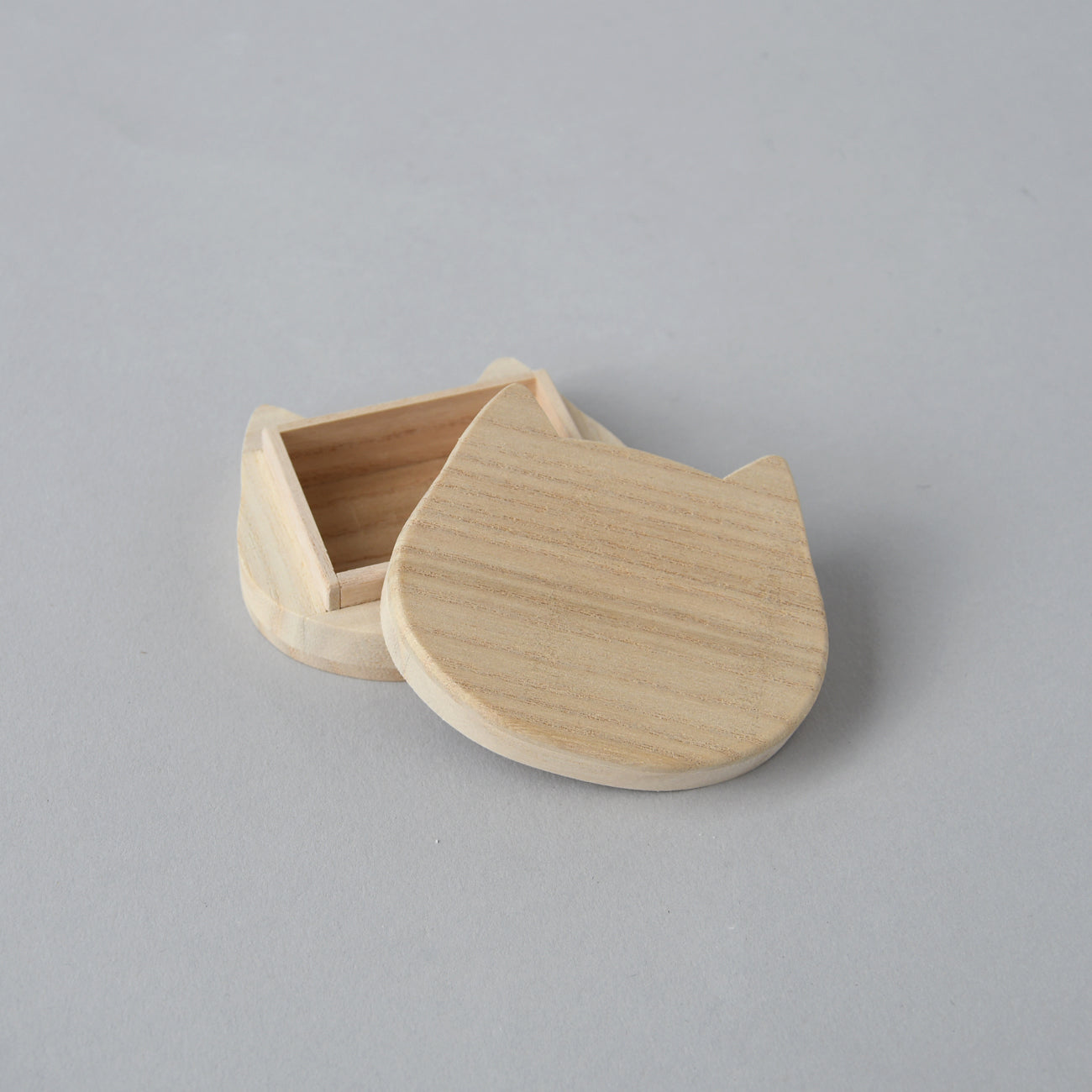 桐材で作られた猫型のジュエリーボックスは、機能性と遊び心を優しく融合させています。