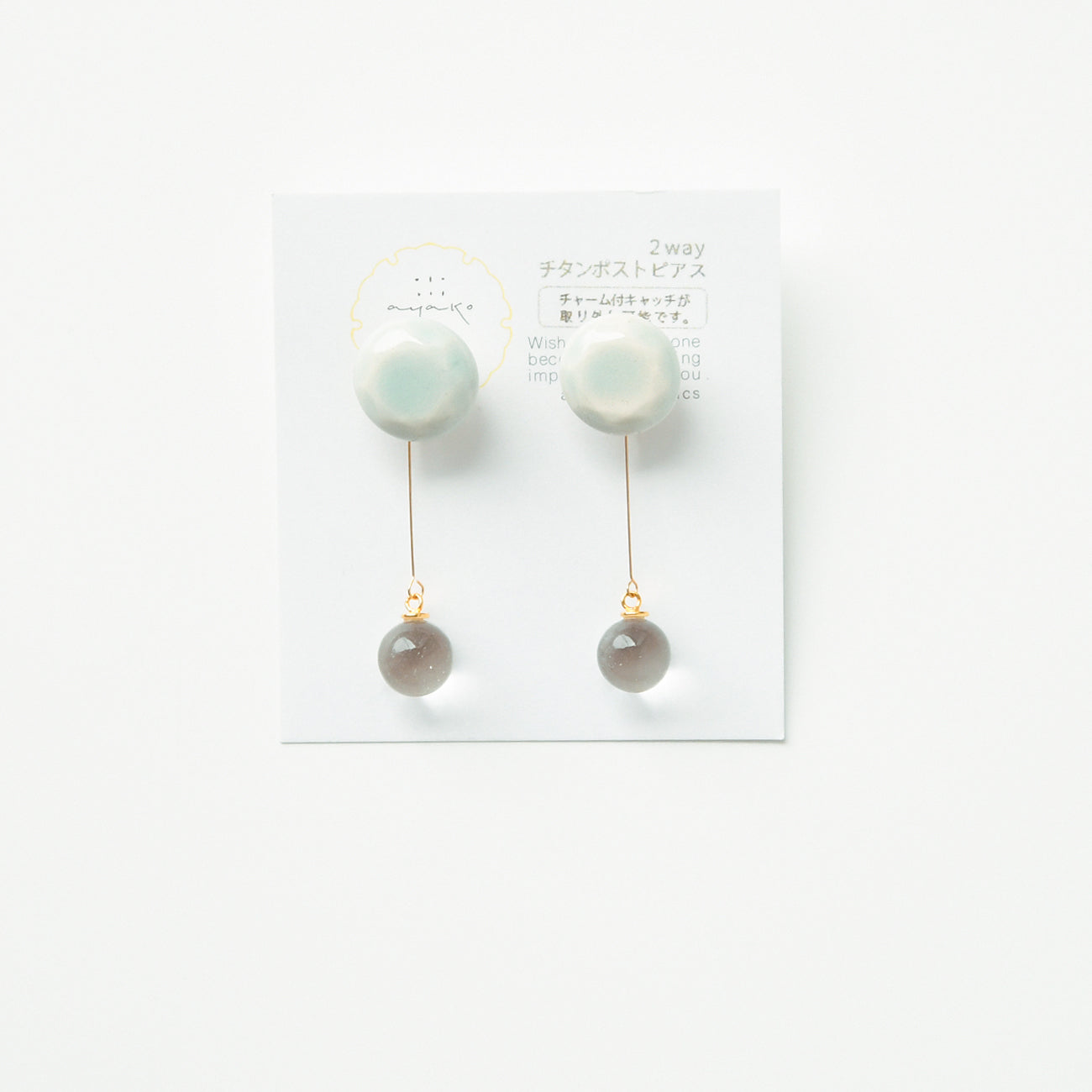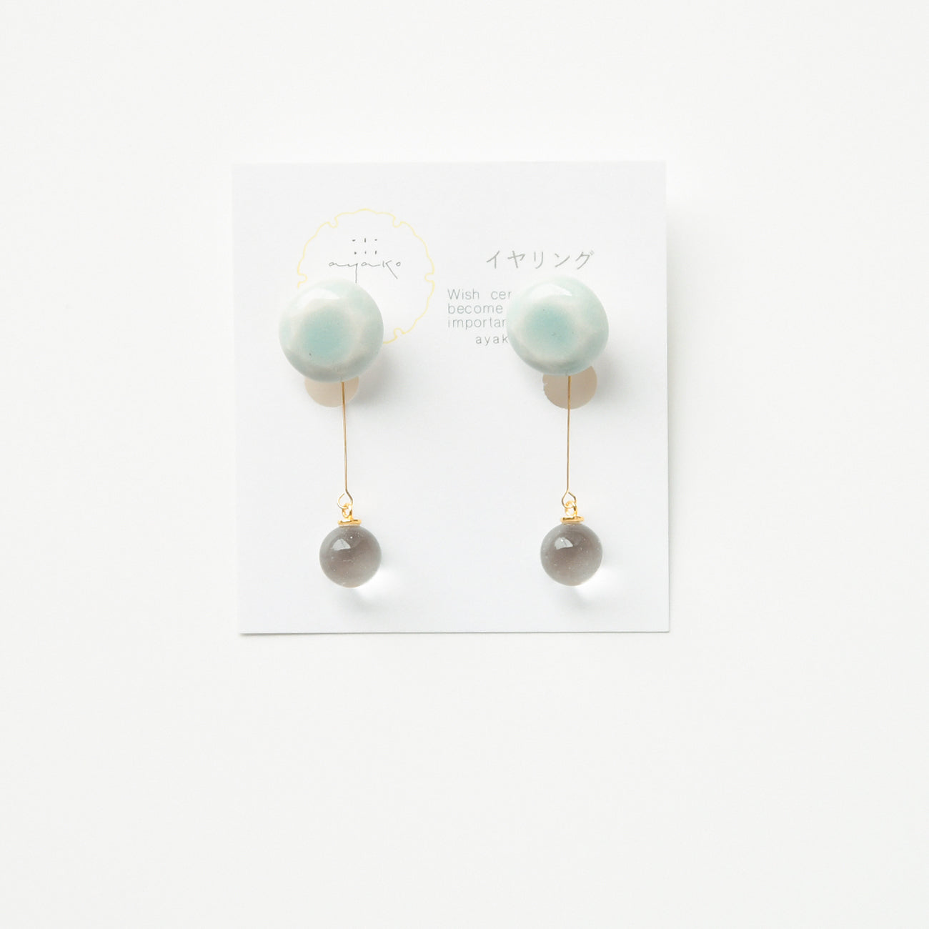 ceramic and glass circle 青磁(ロング)/ ピアス / イヤリング