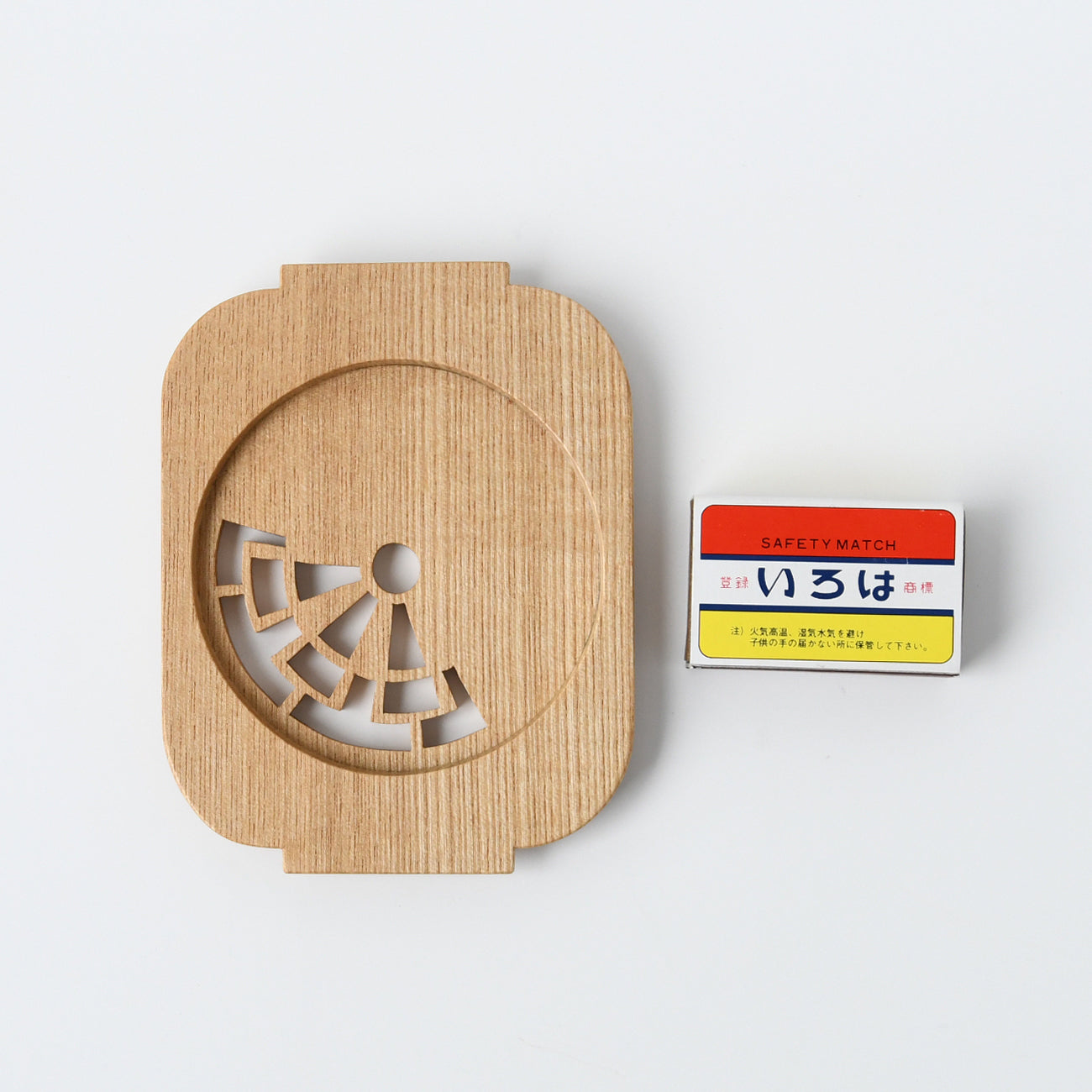 提灯の形をしたコースターです。 底の部分はくり抜いて鉾や御所車の車輪に模られています。