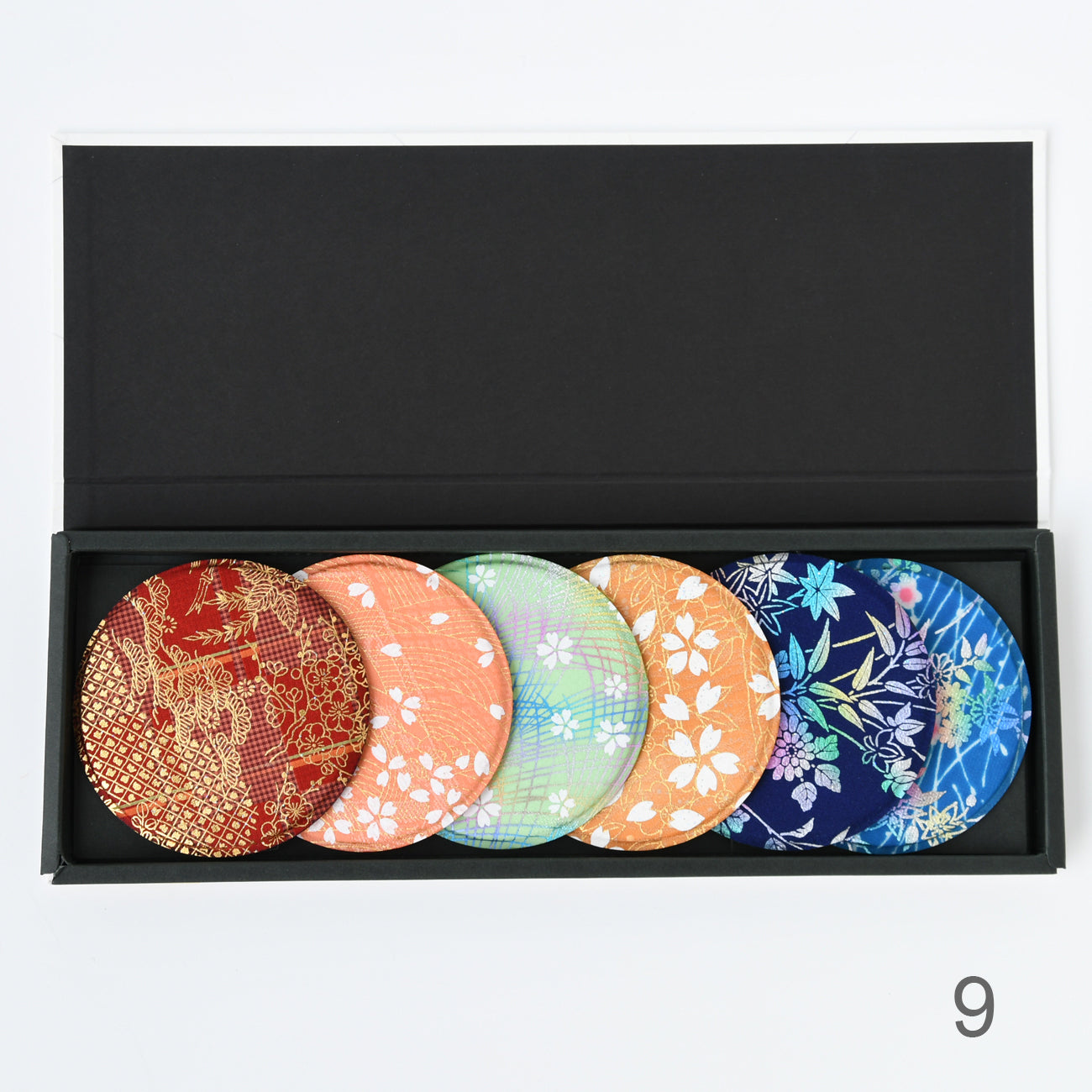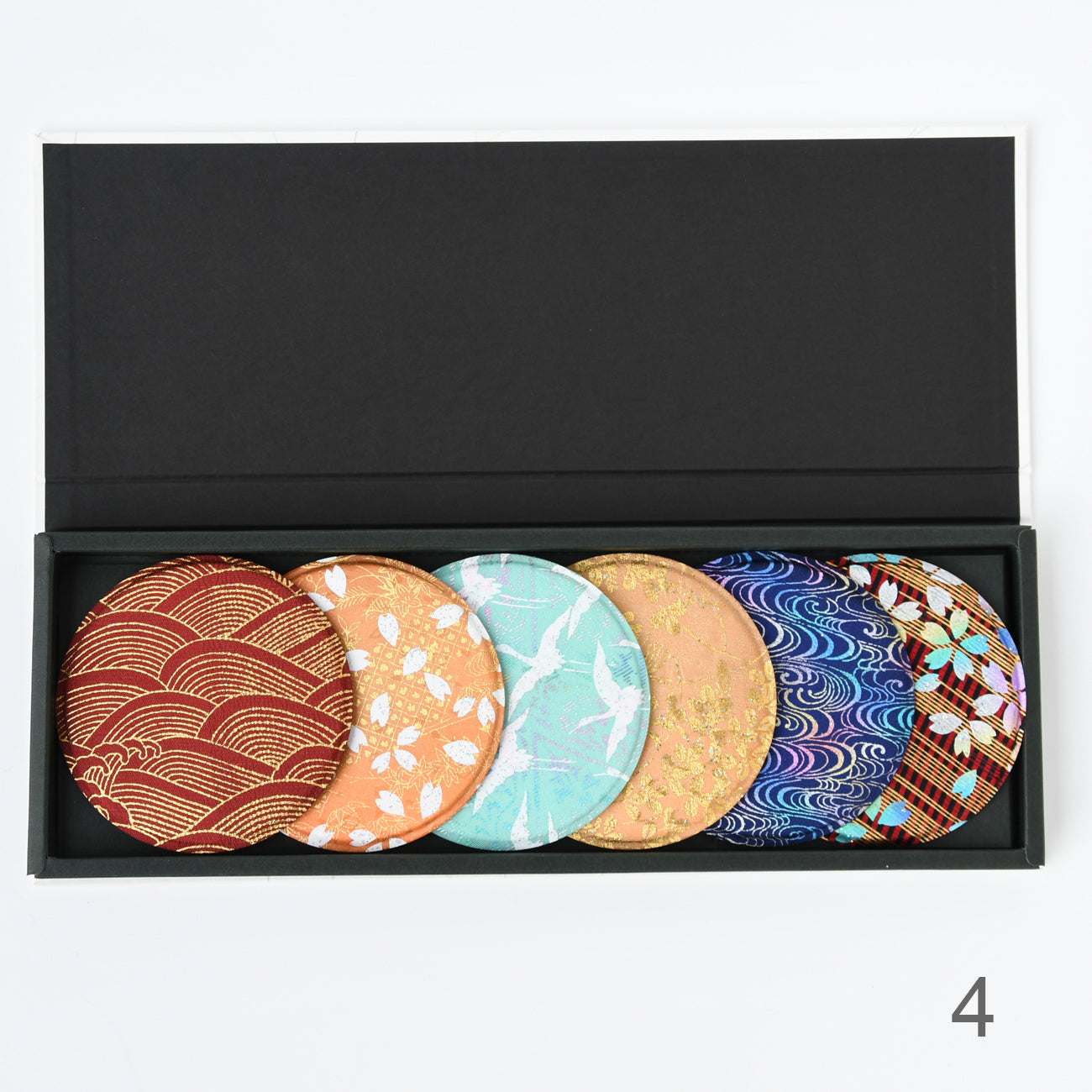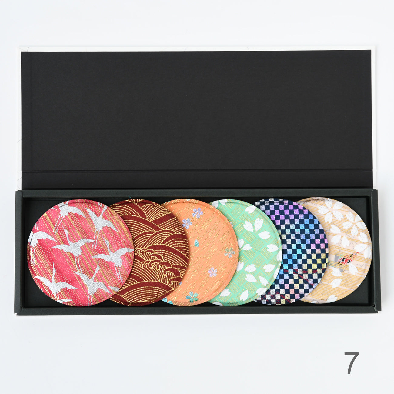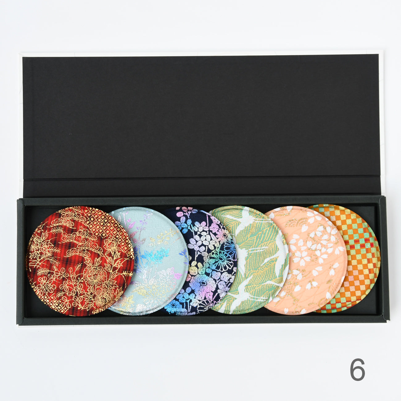 金彩を施した着物地のコースターです。艶やかな装いで、格別のおもてなしを演出します。